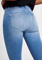 • Bayan Mavi Orta Bel Vücudu Saran Denim Pantolon