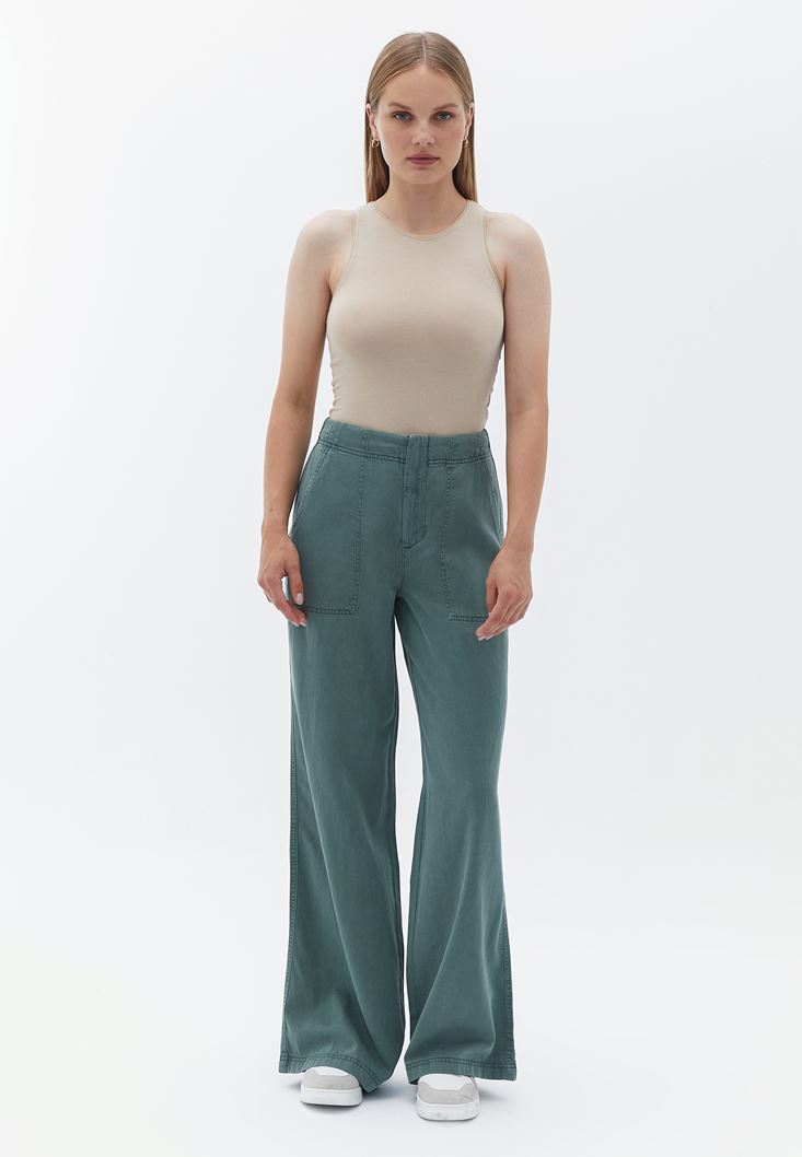 • Bayan Yeşil Orta Bel Wide-Leg Pantolon ( TENCEL™ )