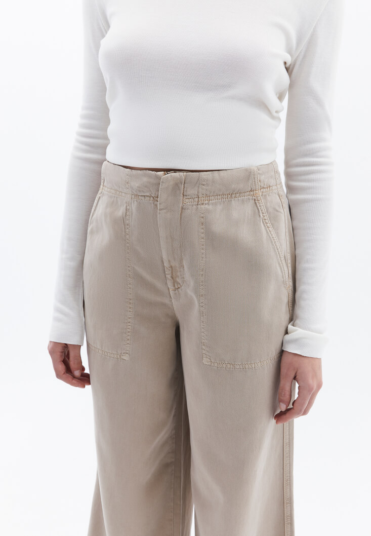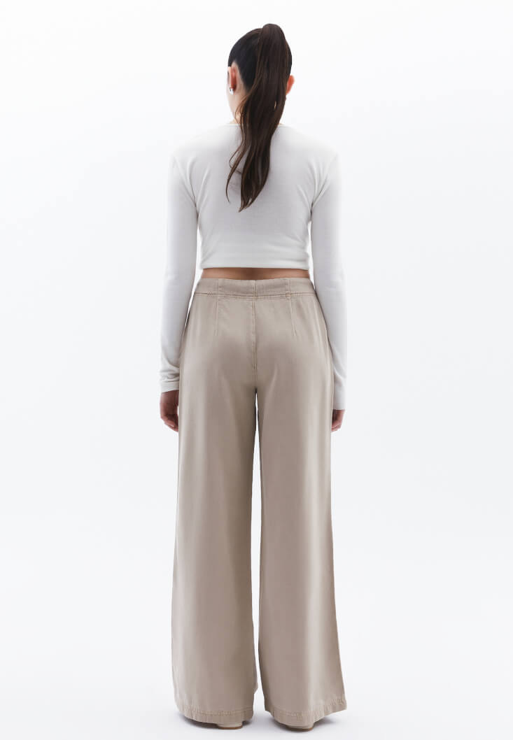 Bej Orta Bel Wide-Leg Pantolon ( TENCEL™ )