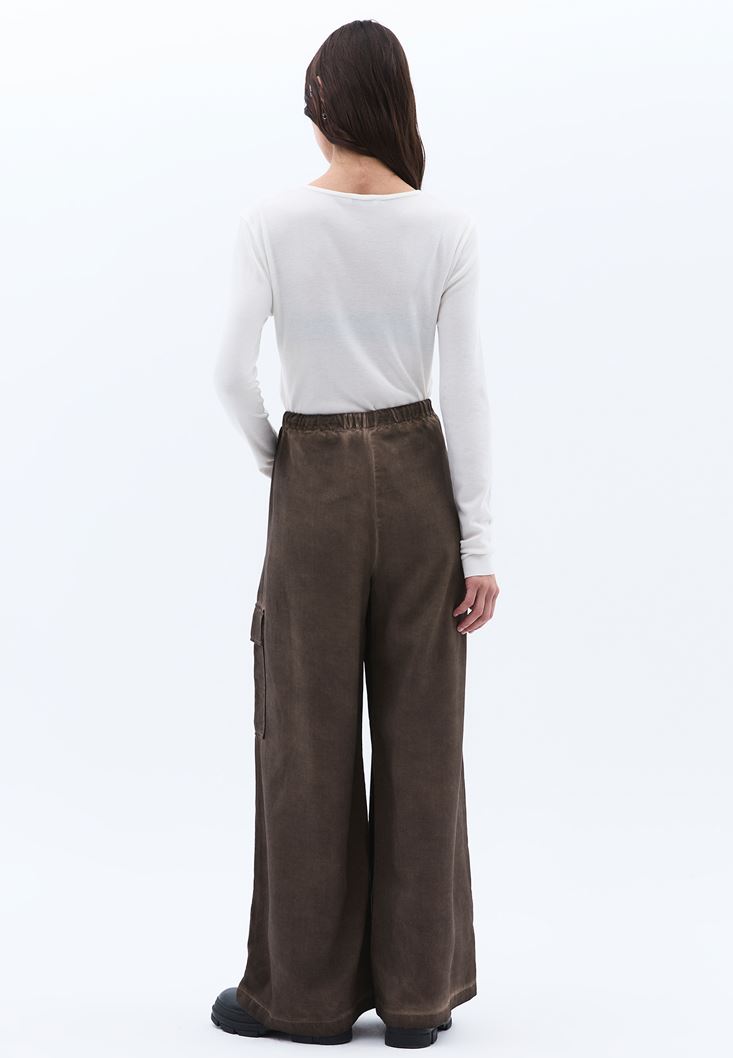 Kahverengi Orta Bel Wide-Leg Pantolon ( TENCEL™ )