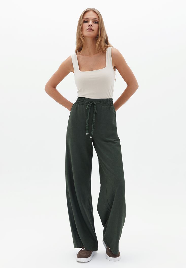 Yeşil Orta Bel Wide-Leg Pantolon