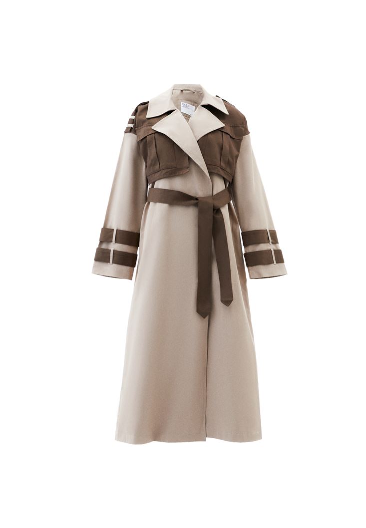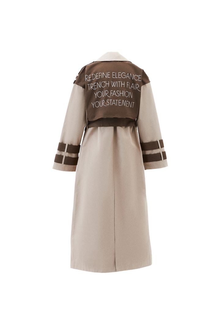 • Bayan Bej Oversize Baskı Detaylı Trençkot