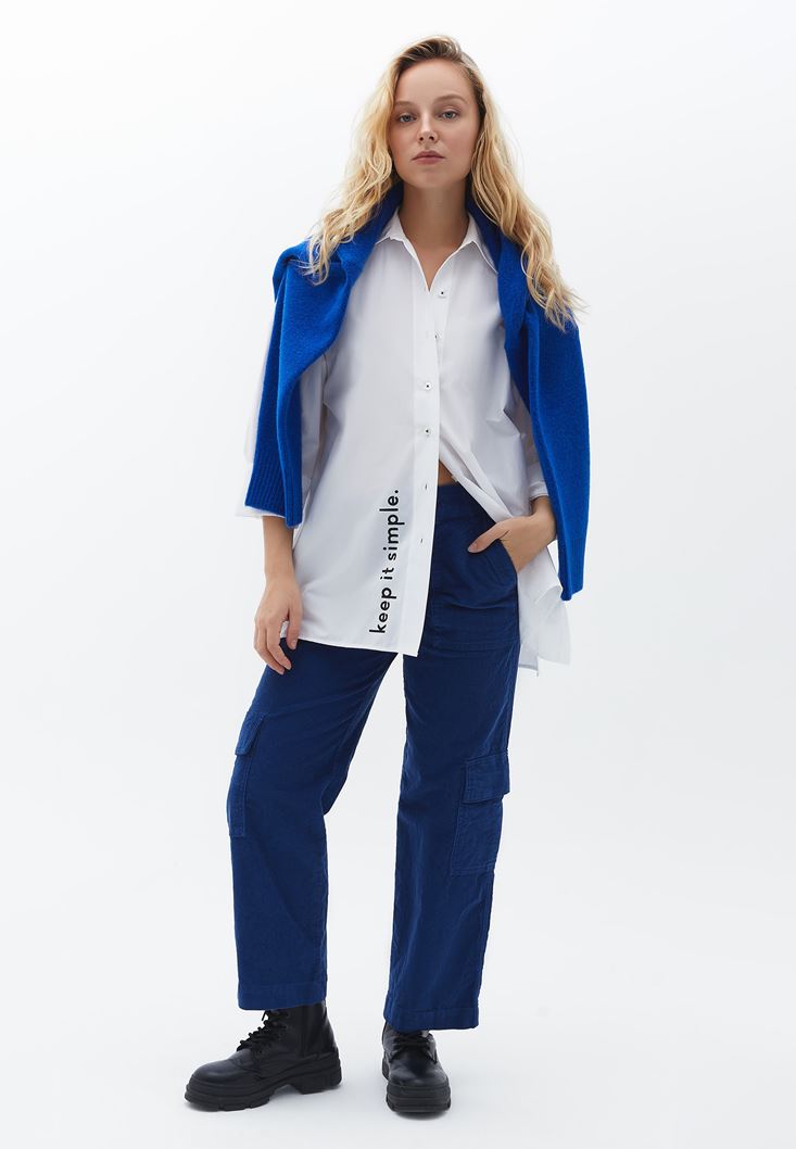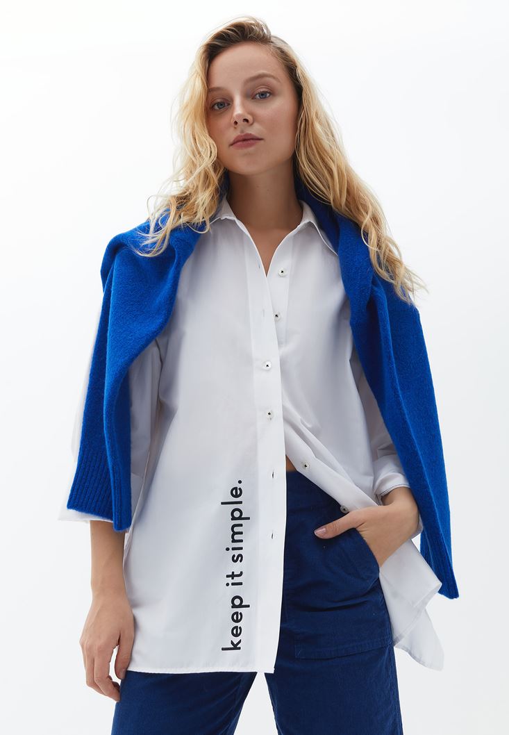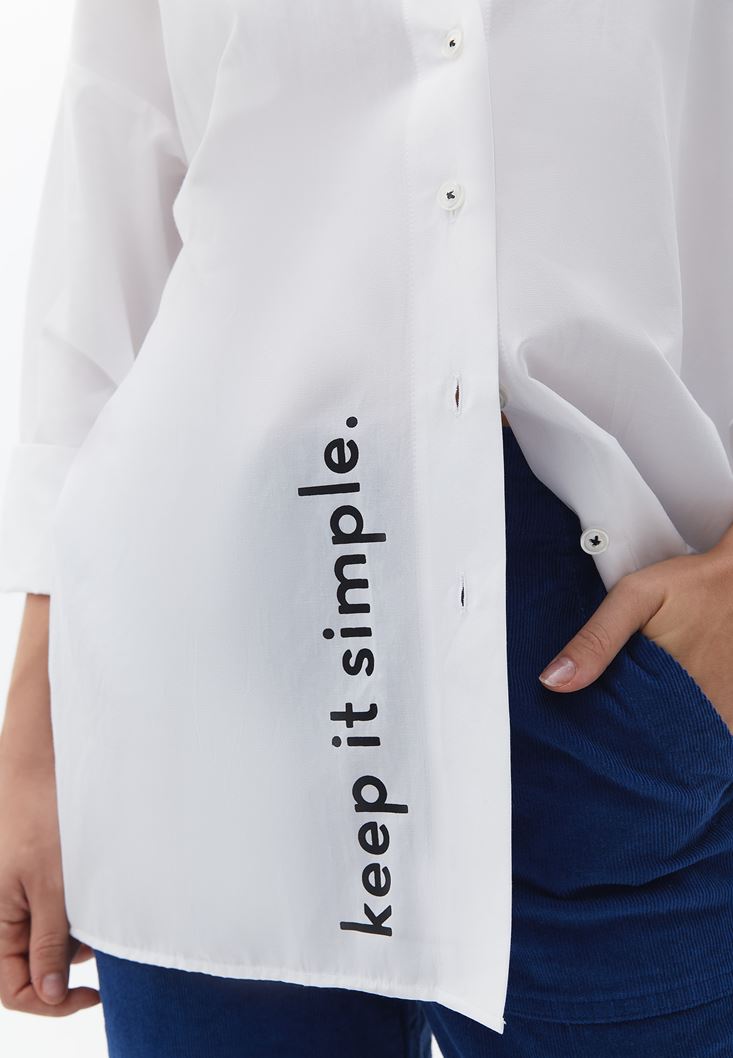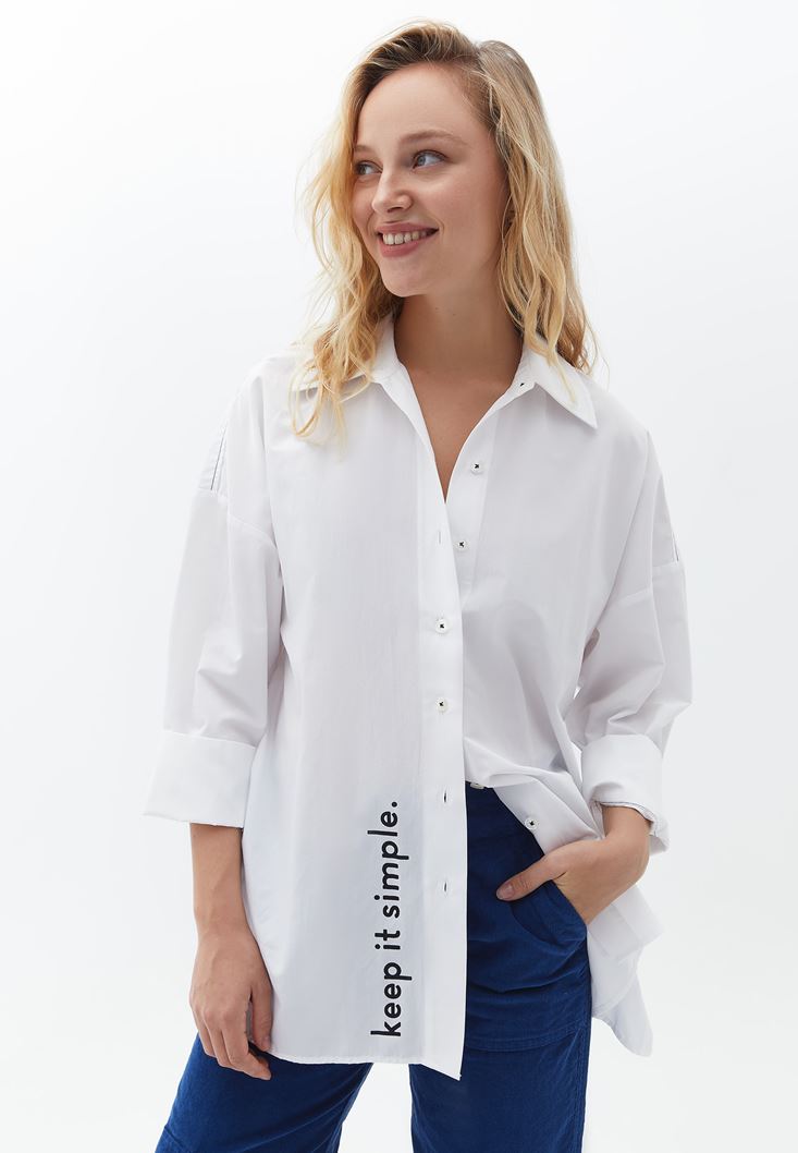Beyaz Oversize Baskılı Gömlek