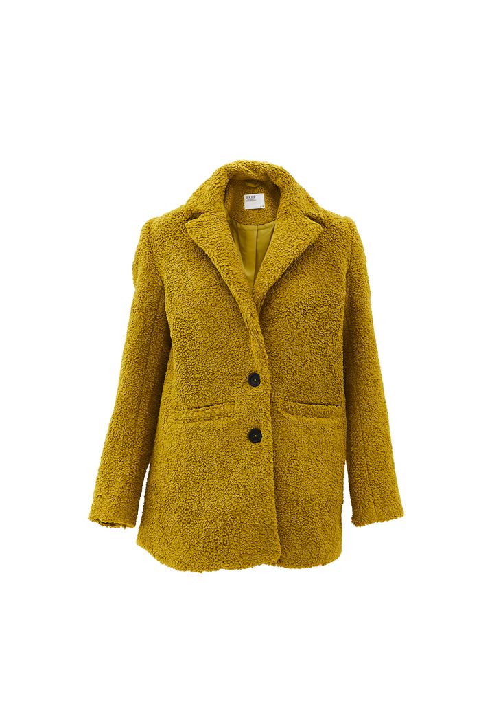 Özel yumuşak buklet doku, bedenden uzak oversize fit, uzun kollu, düğme kapamalı, iki cepli, omuzları vatkalı, içi astarlı.