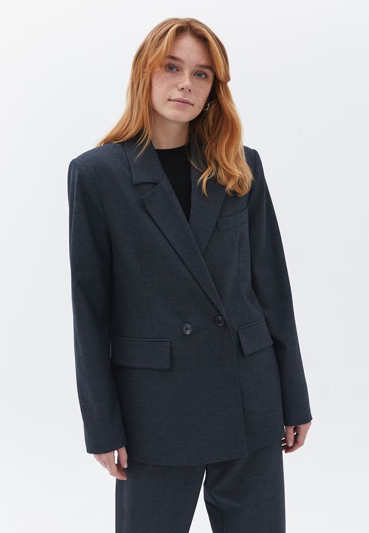 Viskon karışımlı doku, bedenden uzak oversize fit, çizgi desenli, kapaklı iki cepli, düğme kapamalı, içi astarlı.