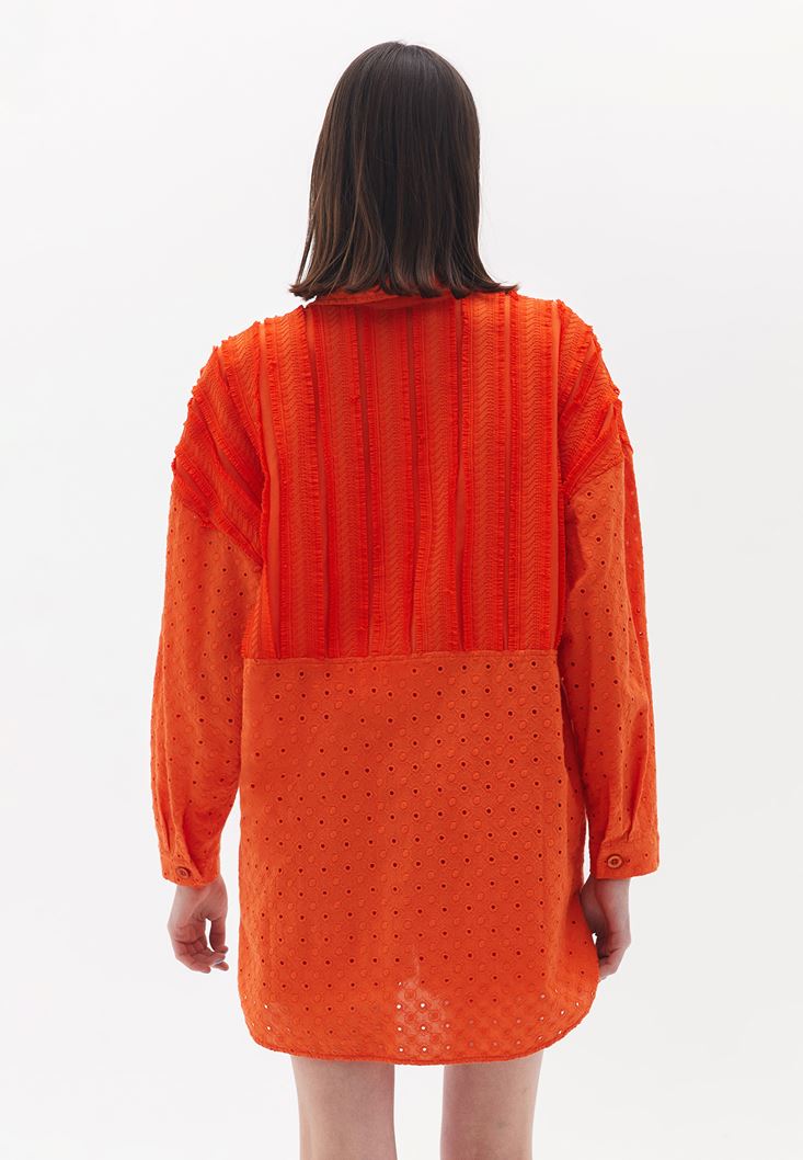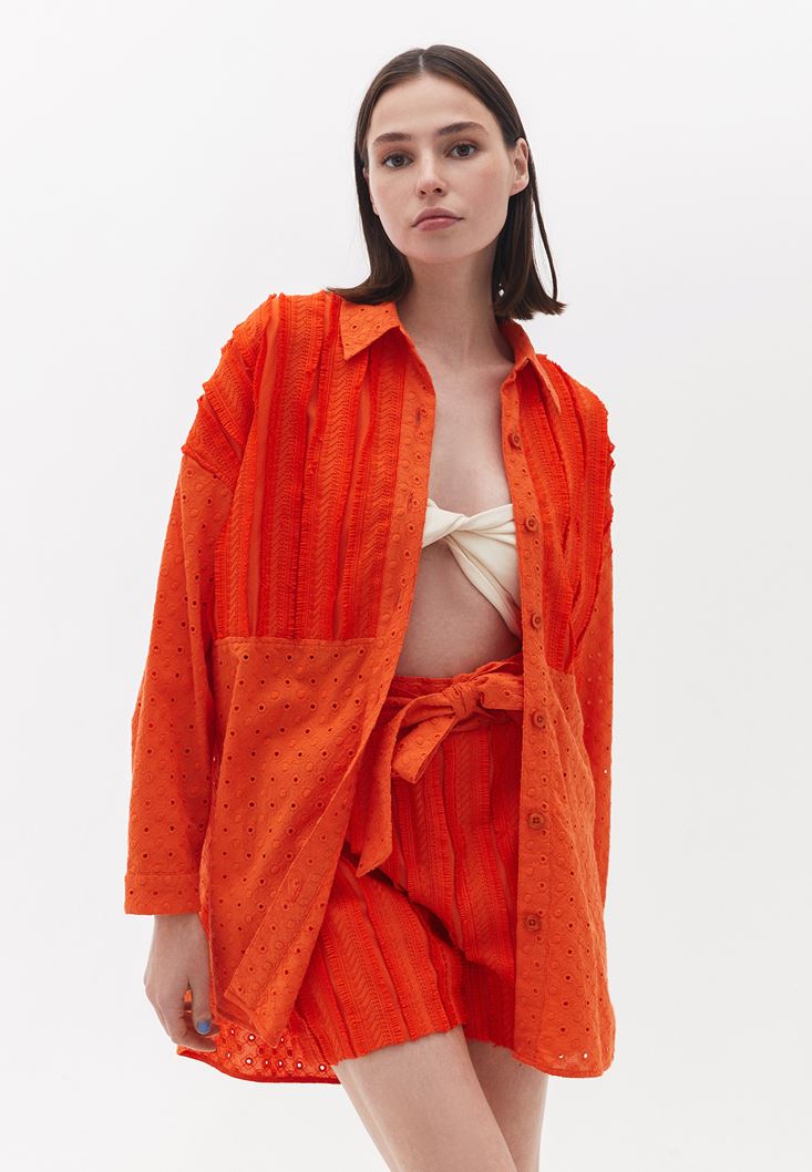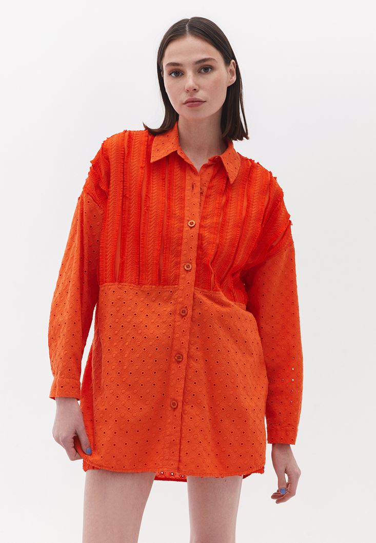 • Bayan Turuncu Oversize Brodeli Gömlek