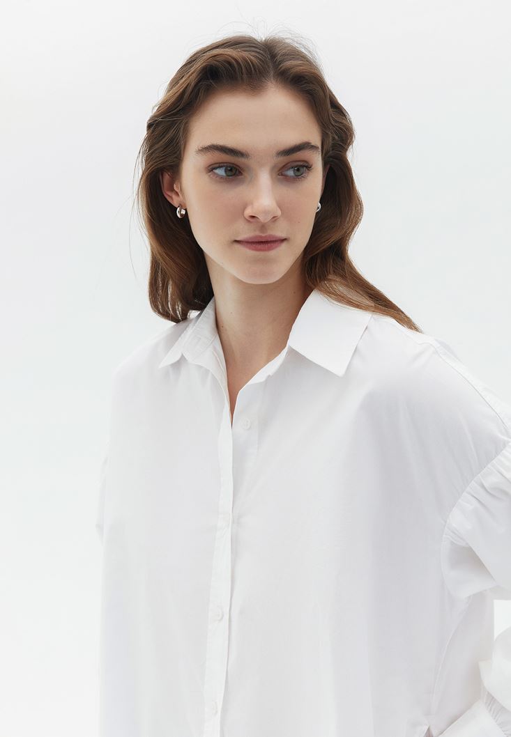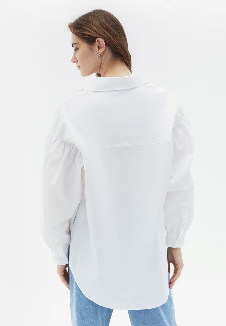 • Bayan Beyaz Oversize Cep Detaylı Gömlek