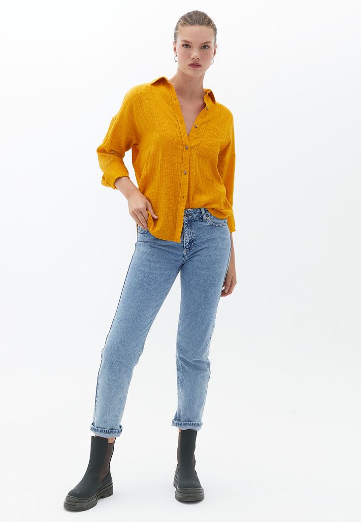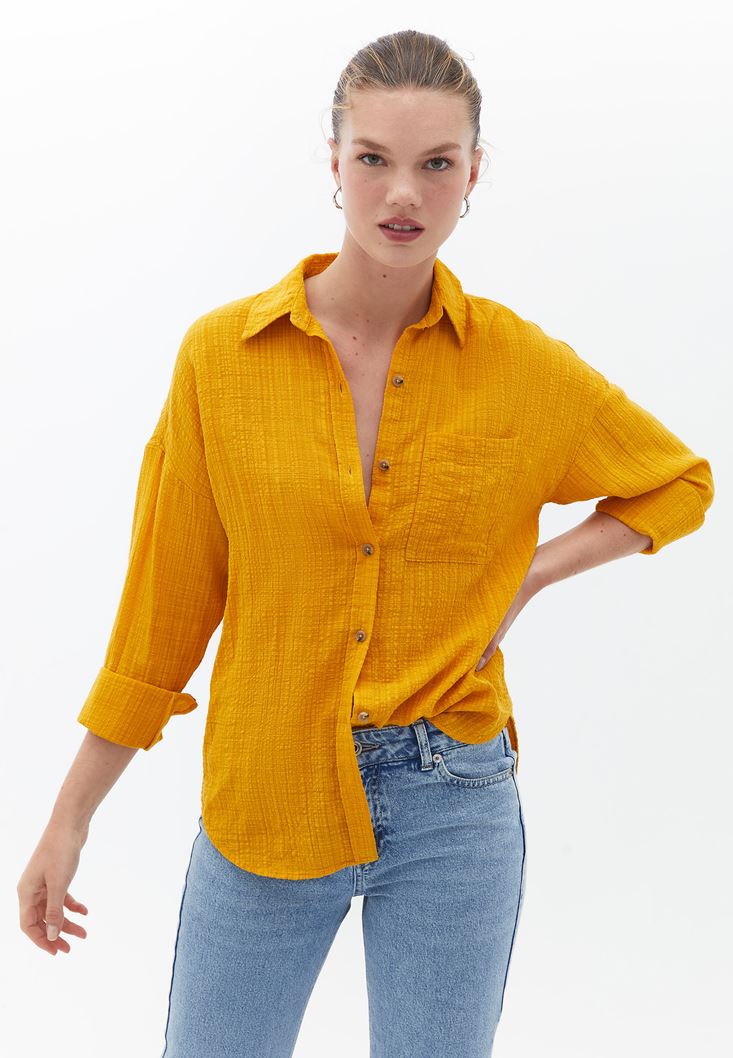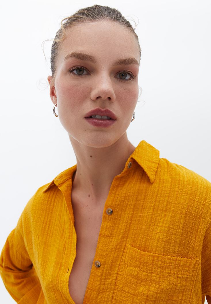 Sarı Oversize Cepli Gömlek