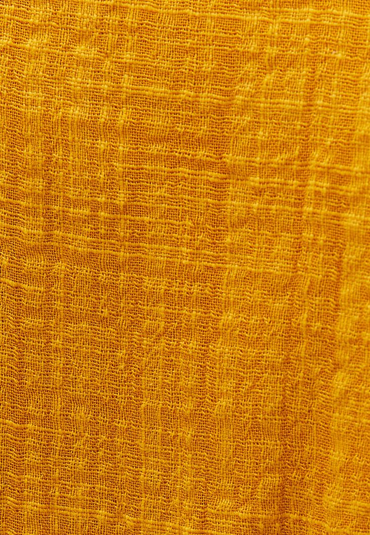 Pamuk ve viskon karışımlı özel doku, bedenden uzak oversize fit, tek cepli, önü kısa arkası uzun asimetrik kesim, uzun kollu.