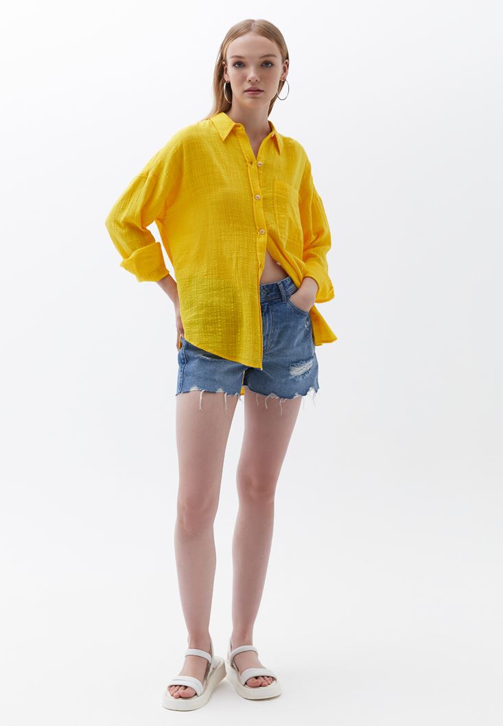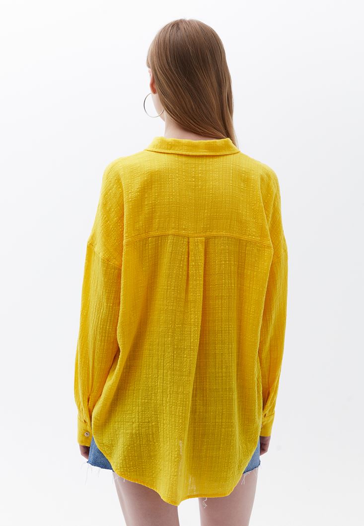 Sarı Oversize Cepli Gömlek