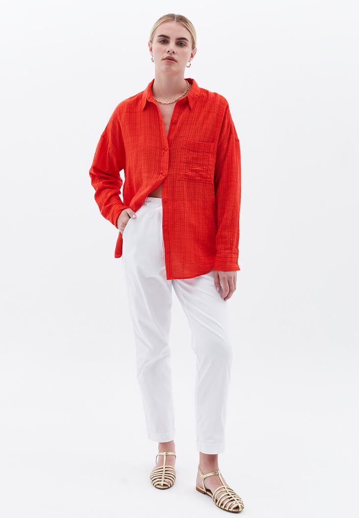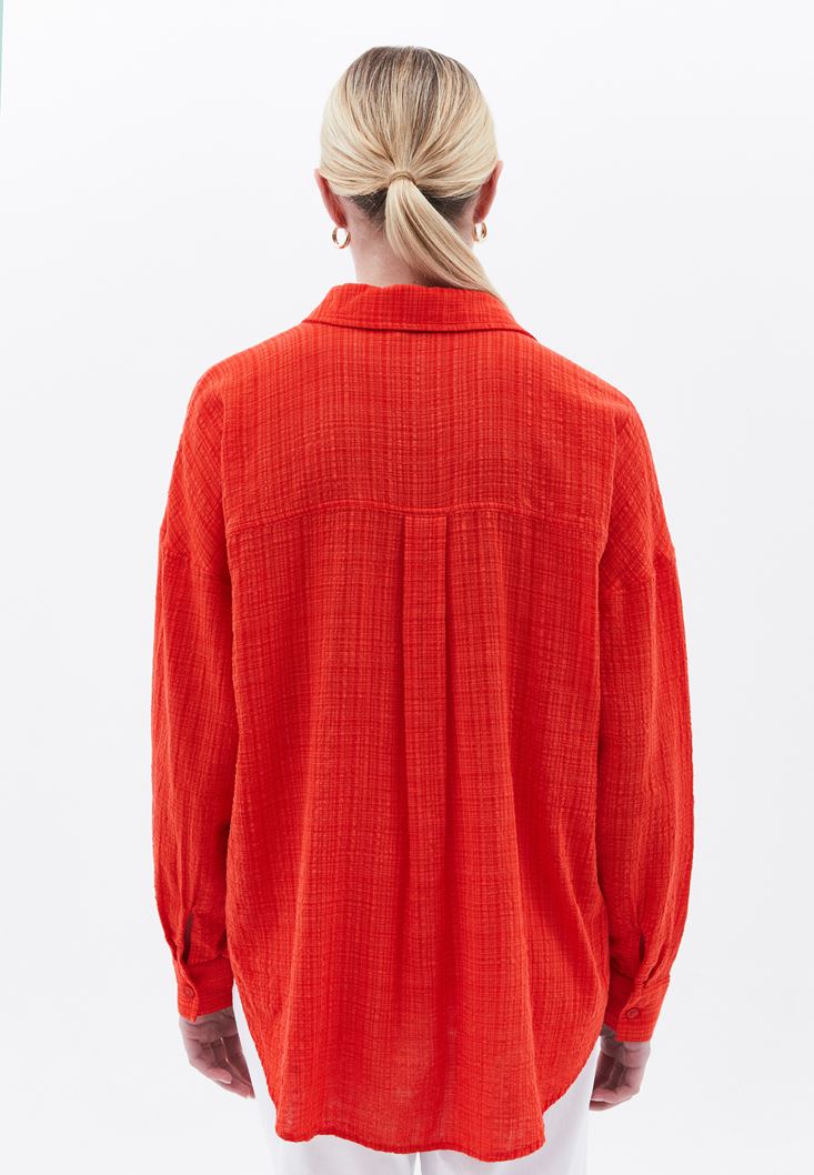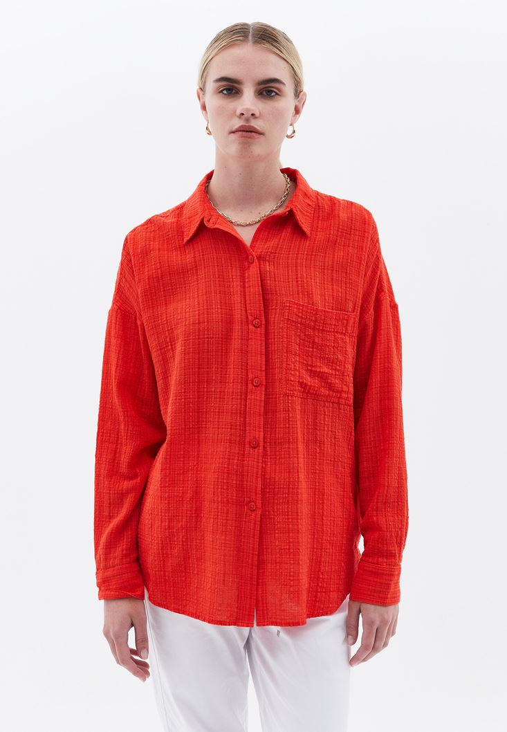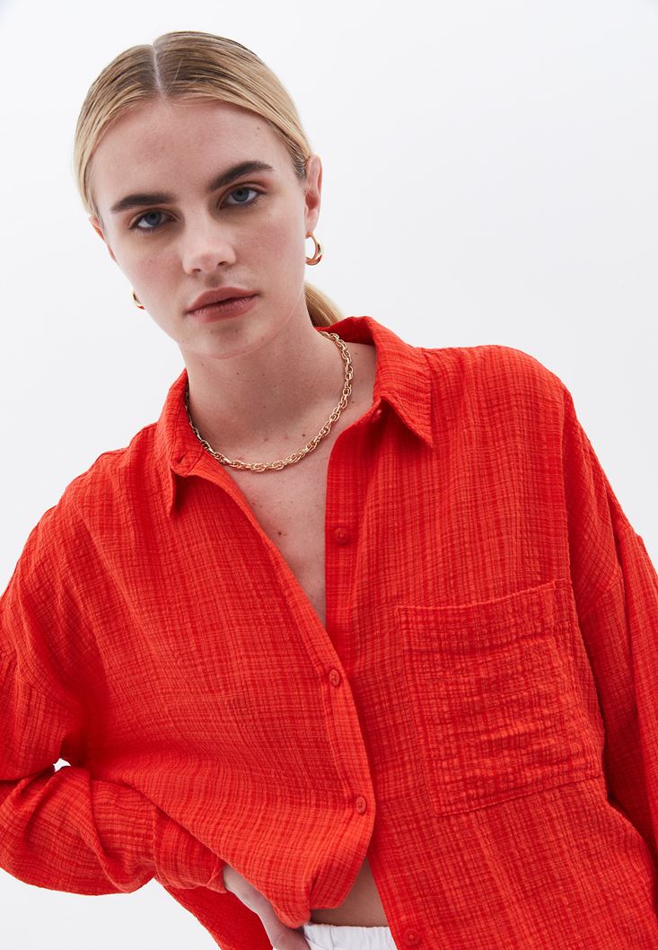 Kırmızı Oversize Cepli Gömlek