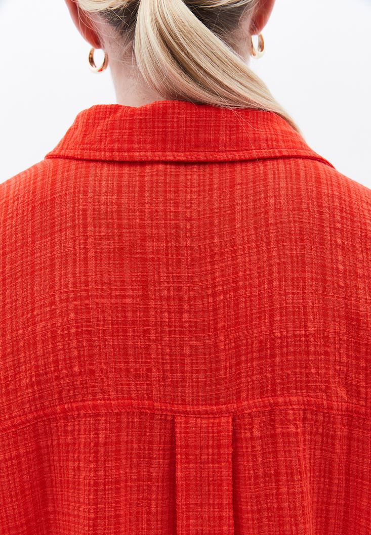 • Bayan Kırmızı Oversize Cepli Gömlek