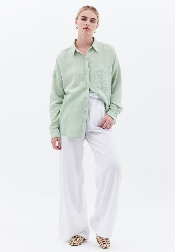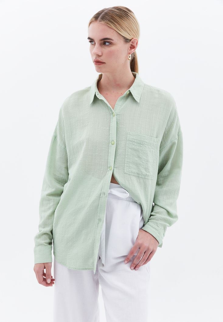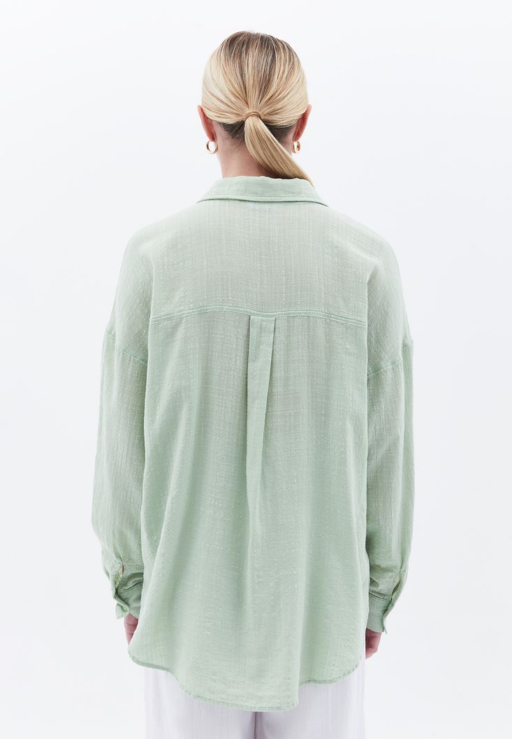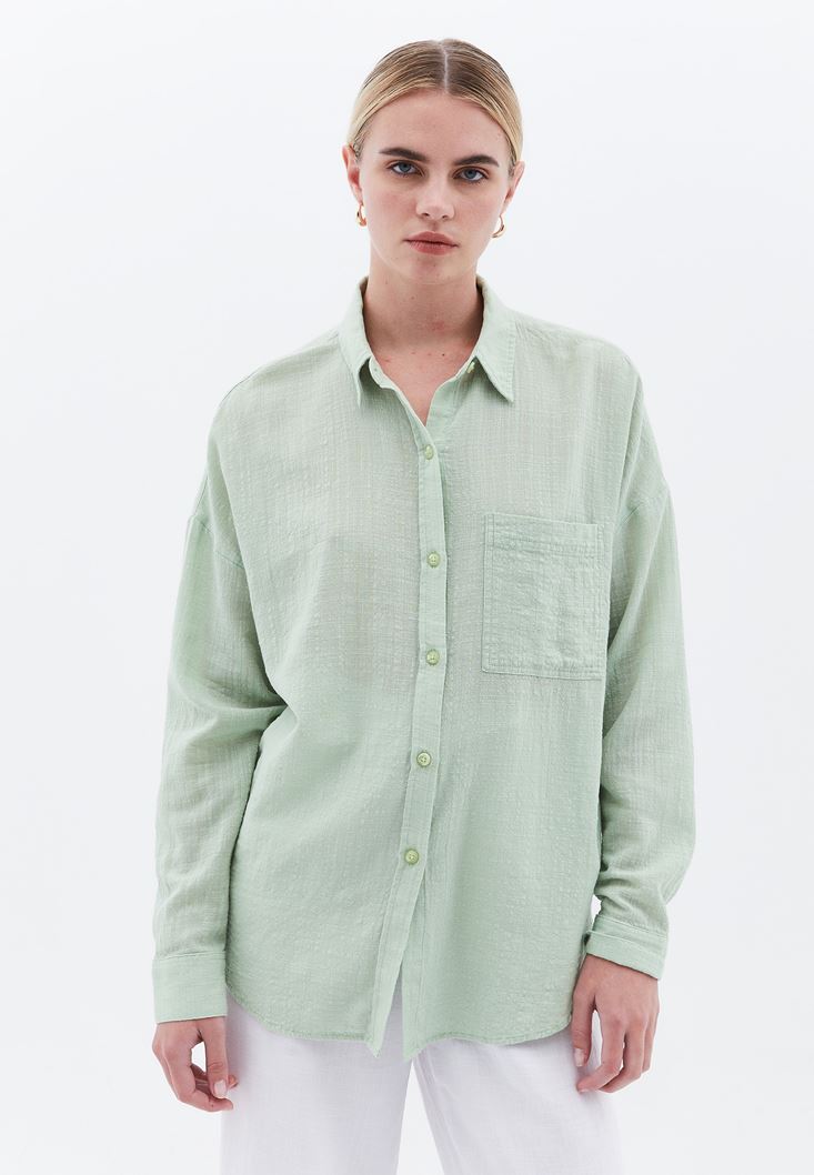 Yeşil Oversize Cepli Gömlek