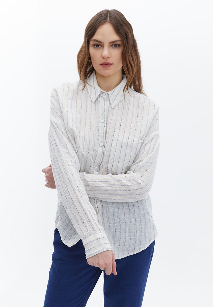 • Bayan Çok Renkli Oversize Cepli Gömlek