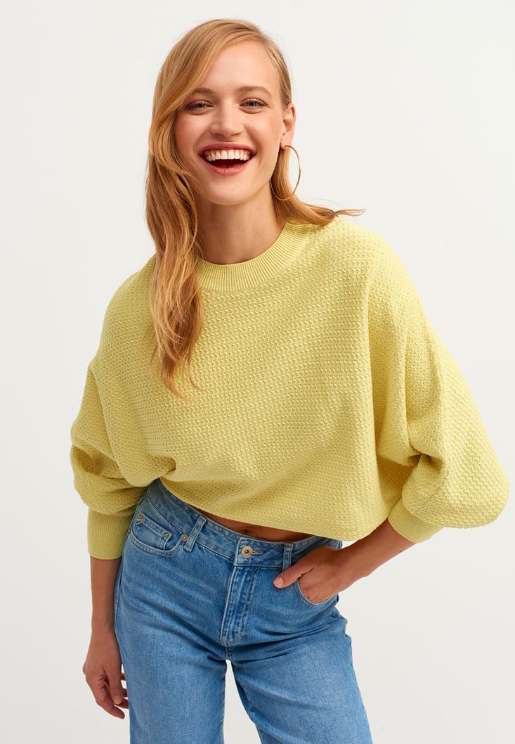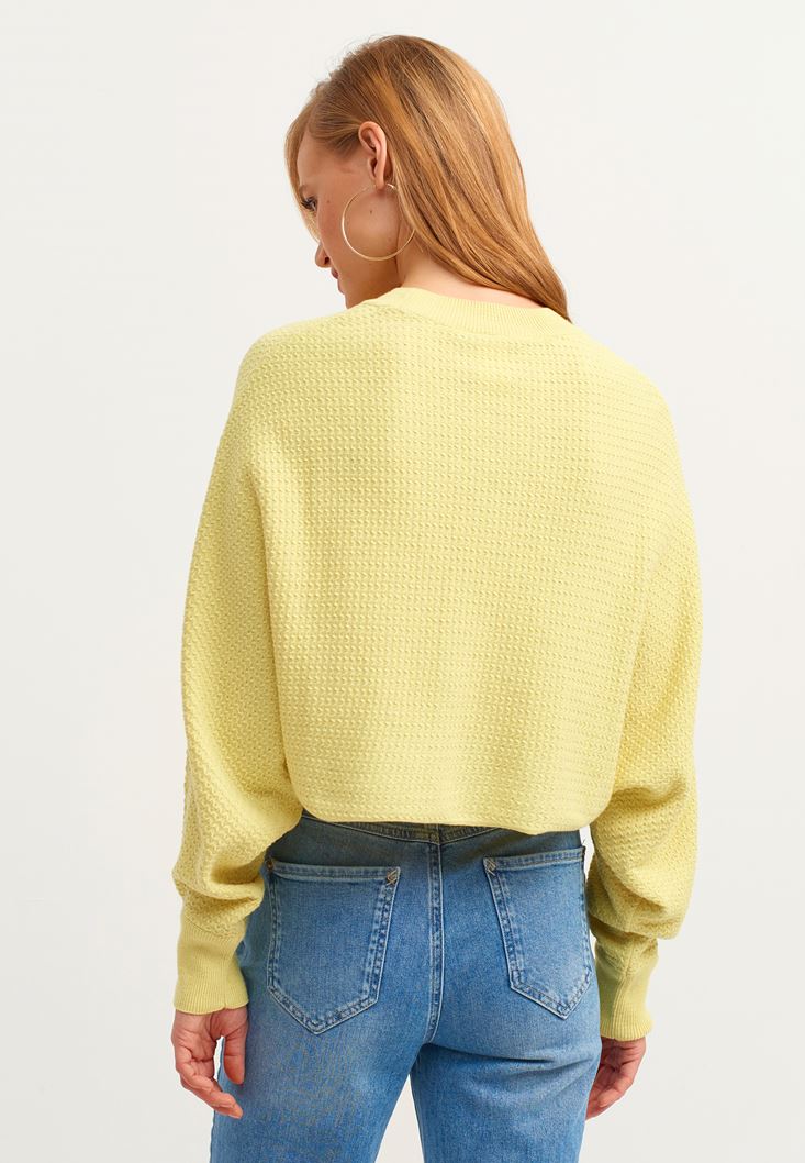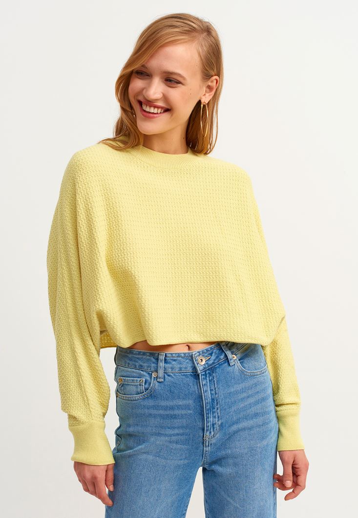 Sarı Oversize Crop Triko