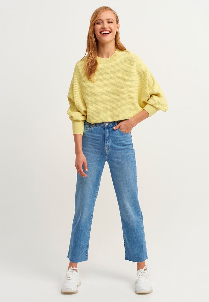 • Bayan Sarı Oversize Crop Triko