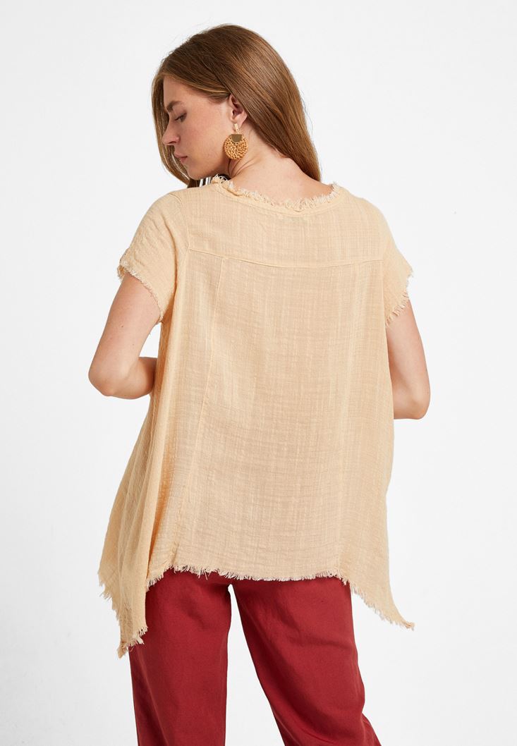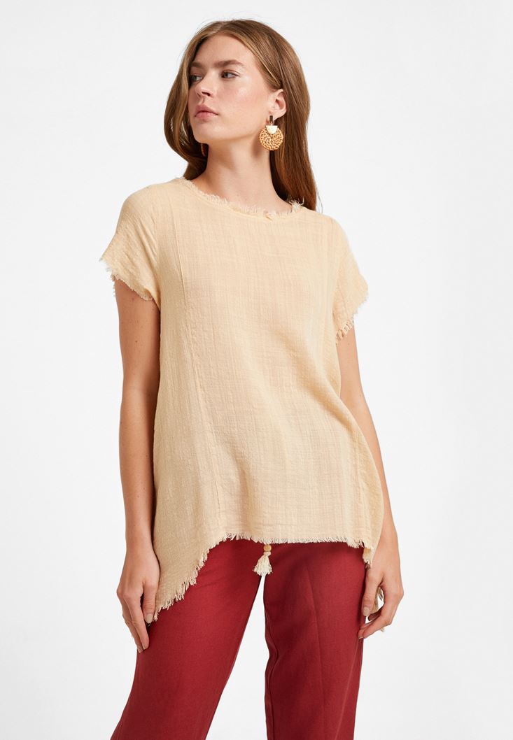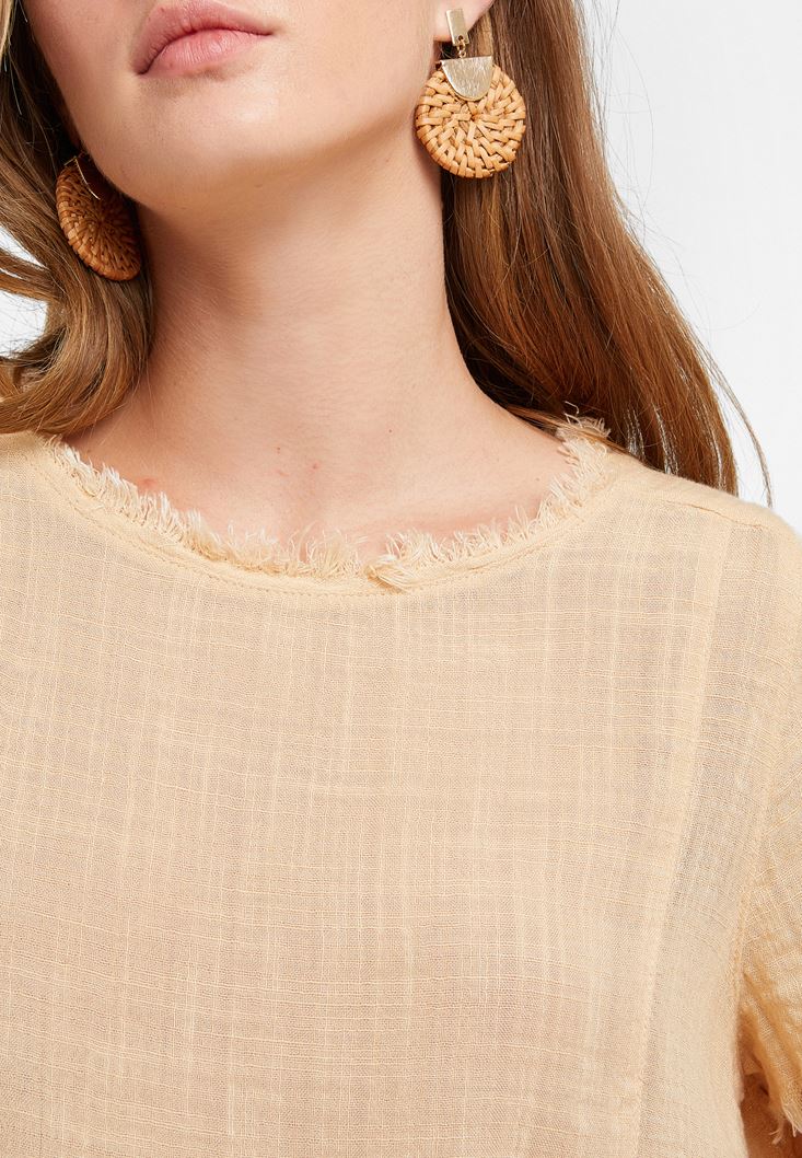 Krem Oversize Dokuma Bluz
