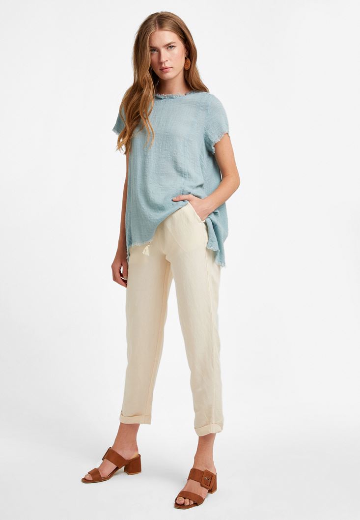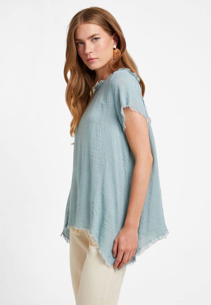 Mavi Oversize Dokuma Bluz