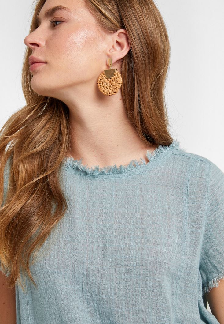 Oversize Dokuma Bluz modeli dökümlü kesimi, çok özel ve şık görünümlü dokusu, zarif detayları ve özgün tarzı ile kısa sürede her zaman kullanmaktan keyif alacağınız kadın bluz modelleri arasında yer alacak. Sıfır yaka kesimi ve yakayı ön plana çıkarmak için kullanılan kesik detayları ile salaş görüntüsü ön plana çıkan bluz modelinin kol ve etek uçlarında da kesik detaylar yer alıyor. Bu detaylar sayesinde enerji ve hareket kazanan tasarım etnik, bohem, günlük, casual ya da ofis kombinlerinde rahatlıkla tercih edebileceğiniz kurtarıcı bir parçaya dönüşüyor. kadın bluz modelinin tasarım bütünlüğü etek uçlarındaki asimetrik kesim ile tamamlanıyor. Pamuk ve viskon liflerinin yumuşak dokusu sayesinde konforlu bir kullanım deneyimi sunan oversize dokuma bluz modeli, OXXO’nun dokulardan aldığı ilhamı başarılı bir şekilde yansıtıyor.