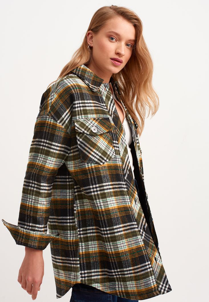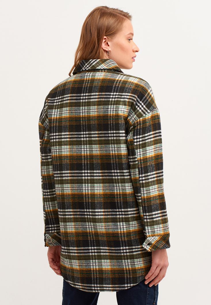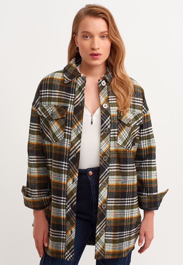 • Bayan Çok Renkli Oversize Ekose Gömlek Ceket