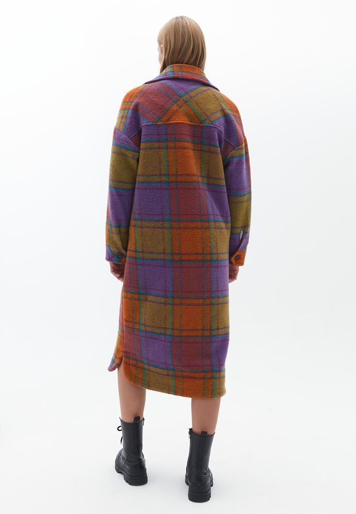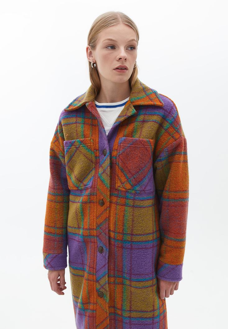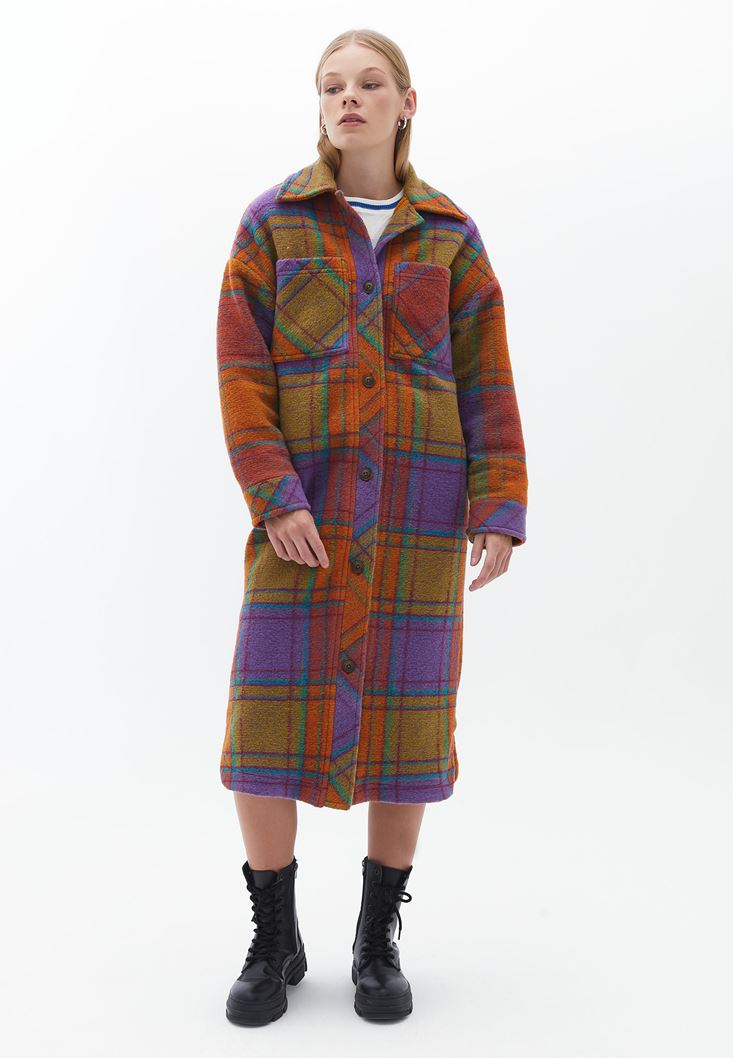• Bayan Çok Renkli Oversize Ekoseli Uzun Ceket