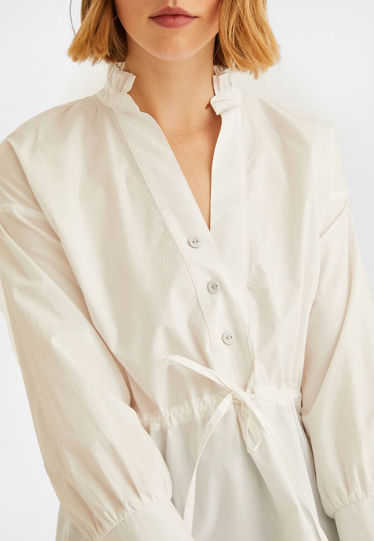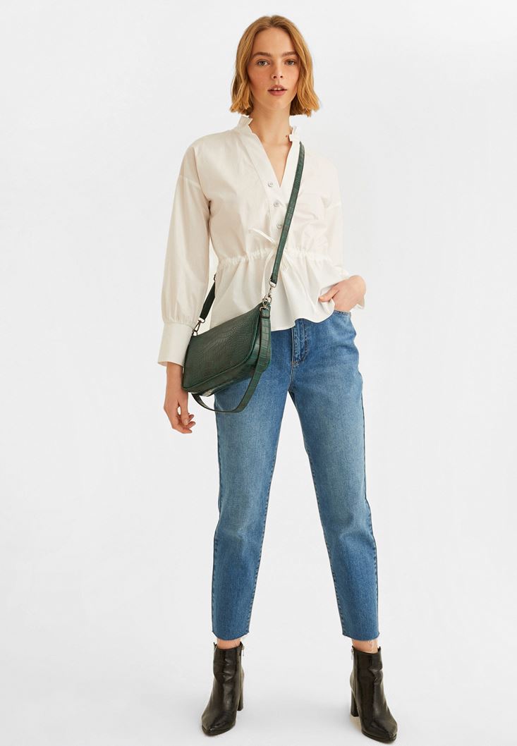 %100 pamuk içerikli doku ile birleşen fırfırlı romantik detaylara bir şans ver! Belden büzgülü ve bağlanabilen yapısı, yakasındaki fırfırlı duruşu ve düğme ayrıntıları ile favorilerine eklenmeyi bekliyor. Onu jeanlerle birlikte kullandığında arkadaş buluşmaları, blazer ceketlerle buluşturduğunda toplantılar için hazır olacaksın... Kendini romantik bir rüzgara kaptırmak için ihtiyacın olan parça bu fırfırlı gömlek... :)
