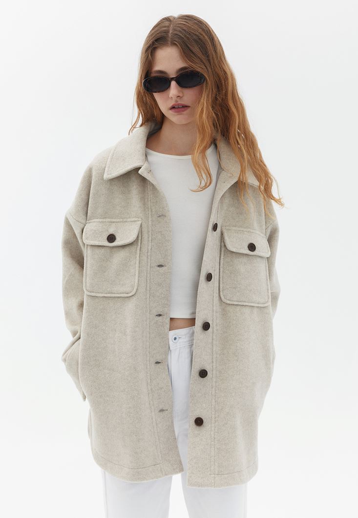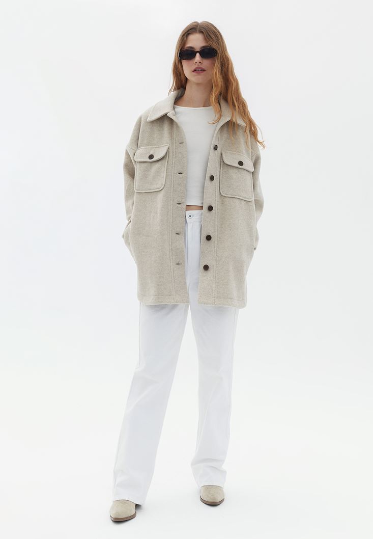 Bej Oversize Gömlek Ceket