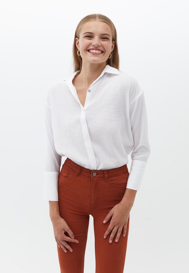 Beyaz Oversize Gömlek ( MODAL )