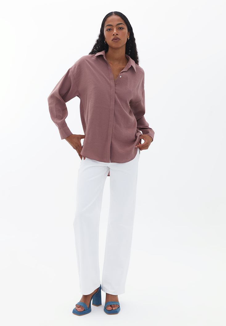 • Bayan Pembe Oversize Gömlek ( MODAL )