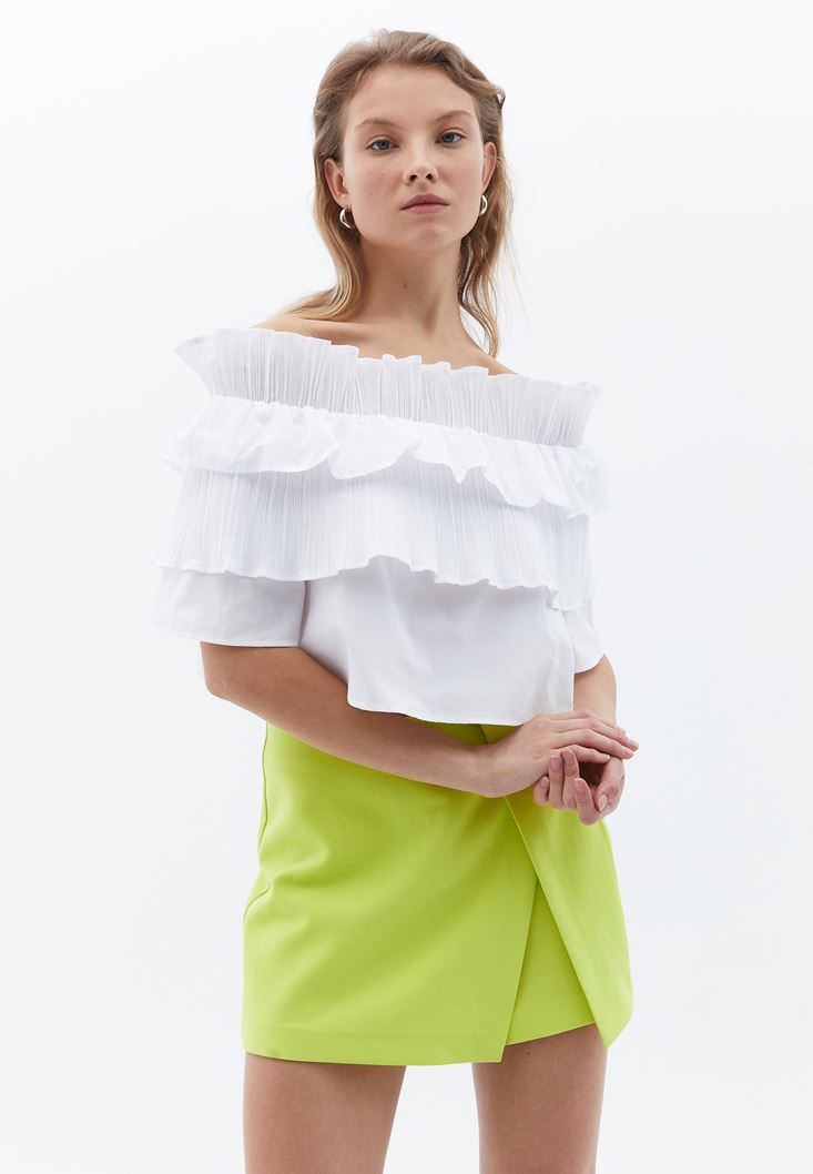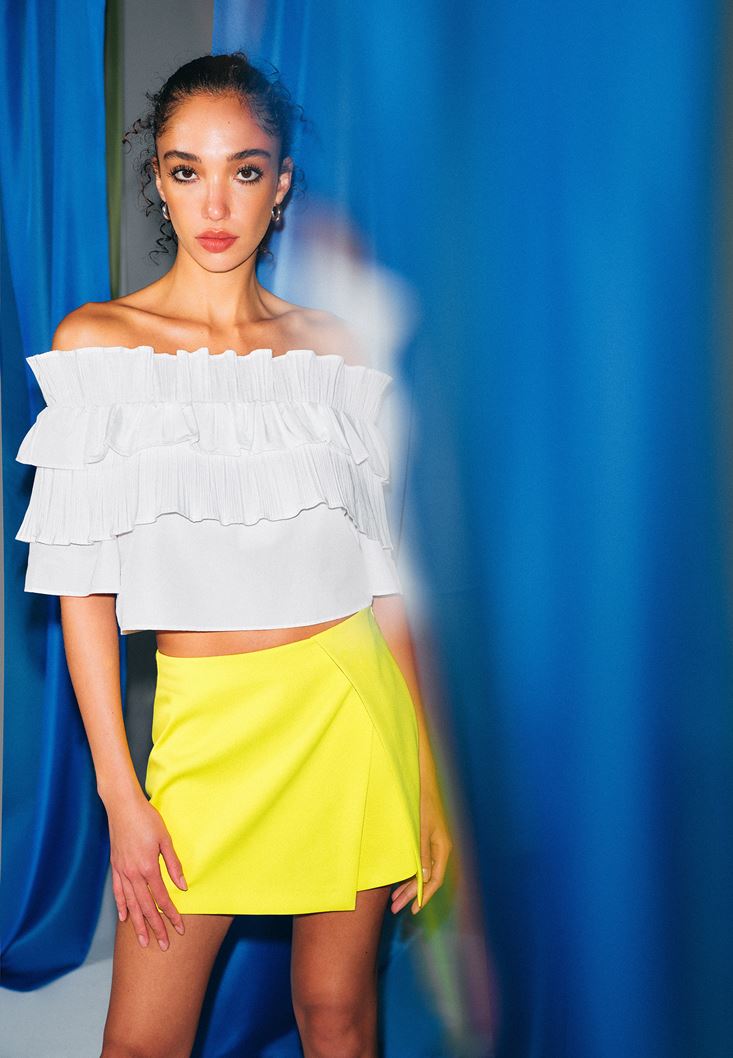 Pileli Bluz ve Şort Etek Kombini