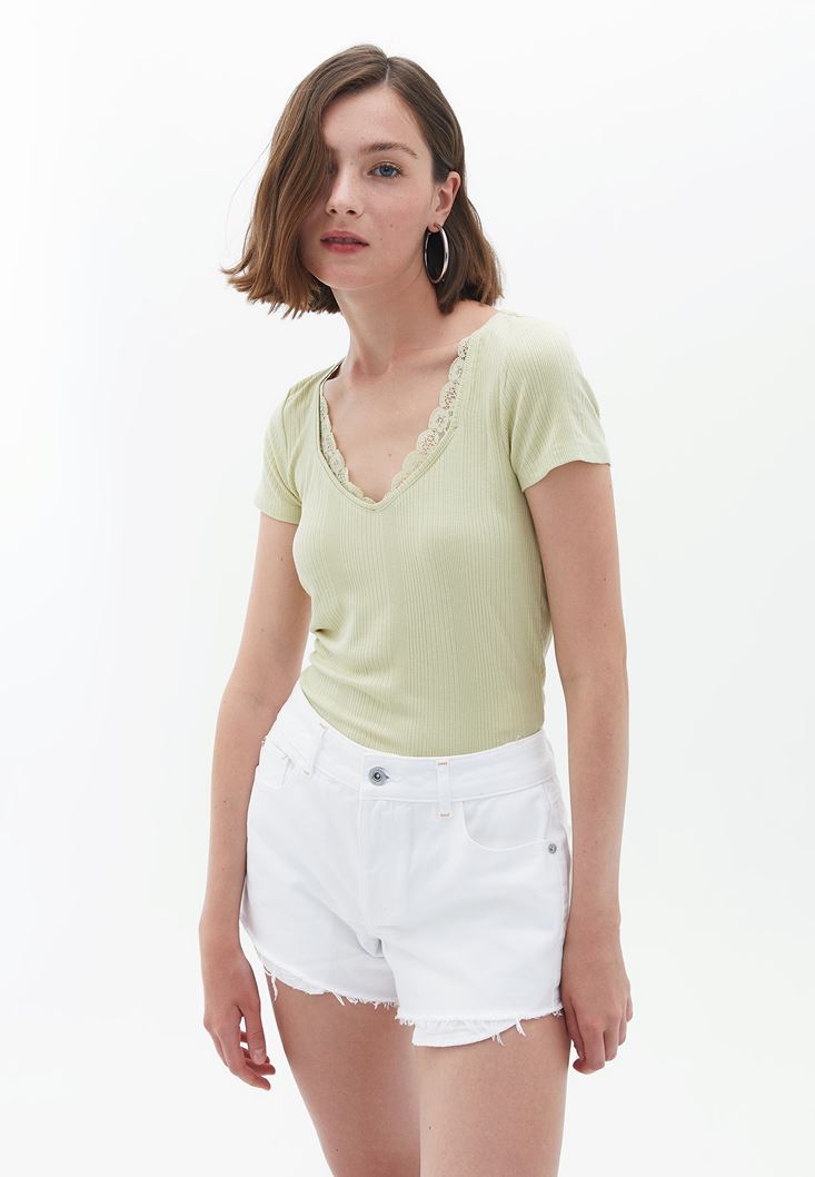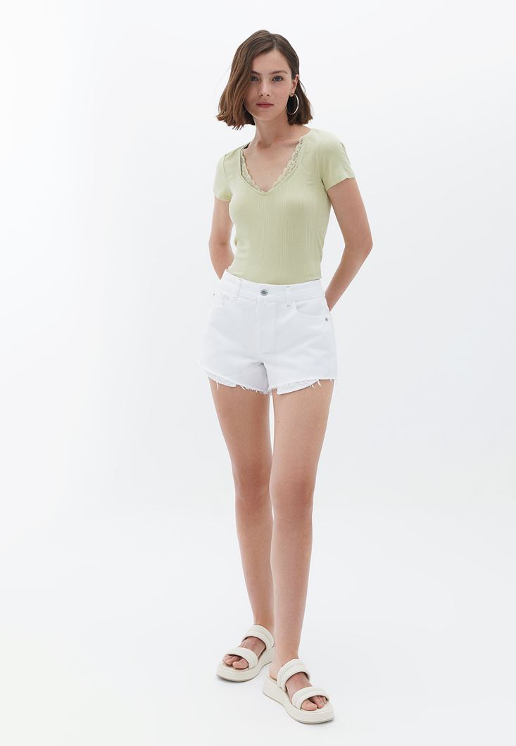Dantelli Tişört ve Mini Şort Kombini