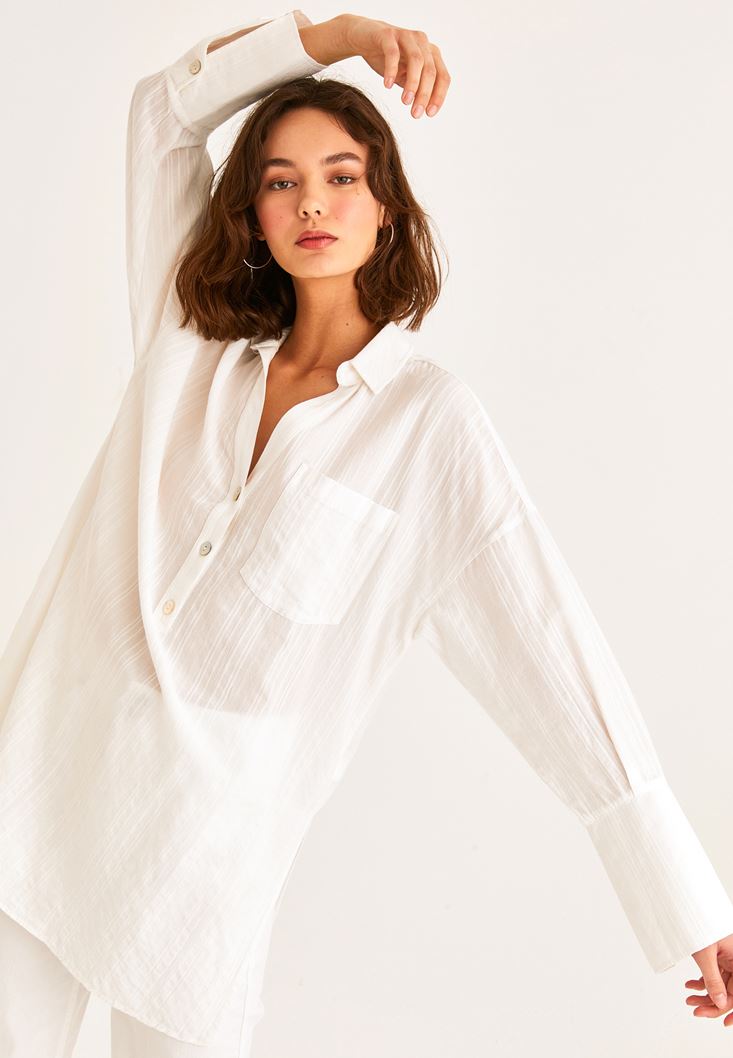 Oversize Gömlek modeli, pamuk ve viskon karışımlı dokusu ile yeni sezonda rahatlığın temsilcisi olmaya aday görünüyor. Kadın gömlek modeli, üç düğmeli yapısı ve geniş manşet detayı ile kombinleriniz için ideal bir seçenek oluyor. Bol veya dar paçalı pantolonlarla kullanabileceğiniz oversize gömlek modelini yeni sezonda dolabınızın favorilerine ekleyebilirsiniz. Kadın gömlek modeli ile tokalı kemerleri bir araya getirerek de farklı bir görünüm elde edebilirsiniz. Oxxo'nun yumuşacık dokularla ve sadeliğin gücüyle sizlere sunduğu oversize gömlek modelleri ile tarzınıza farklılık katabilirsiniz.