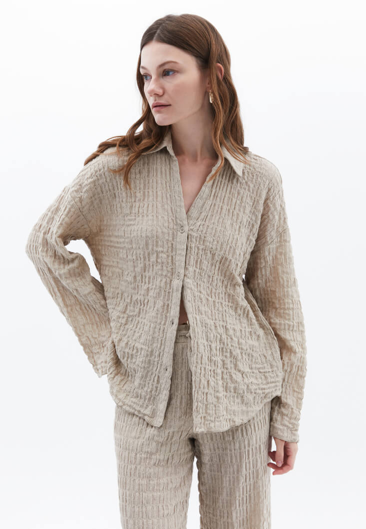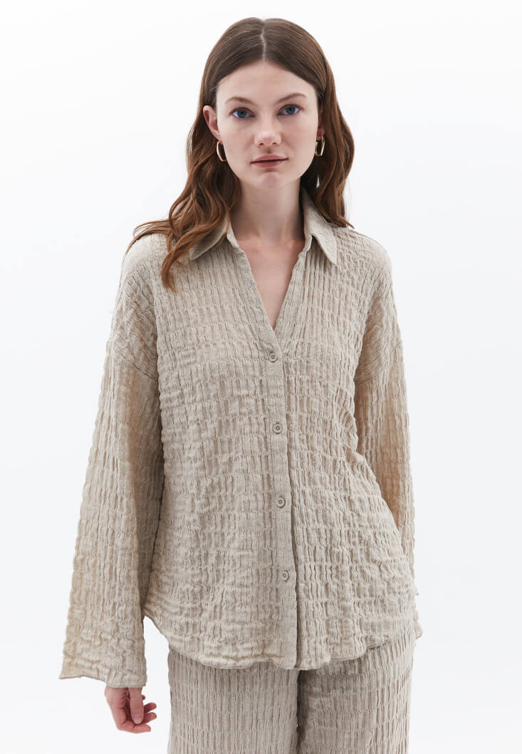 Fit: Oversize / Yaka: Shirt Neck / Kol: Long Sleeve