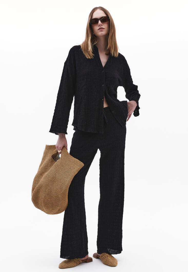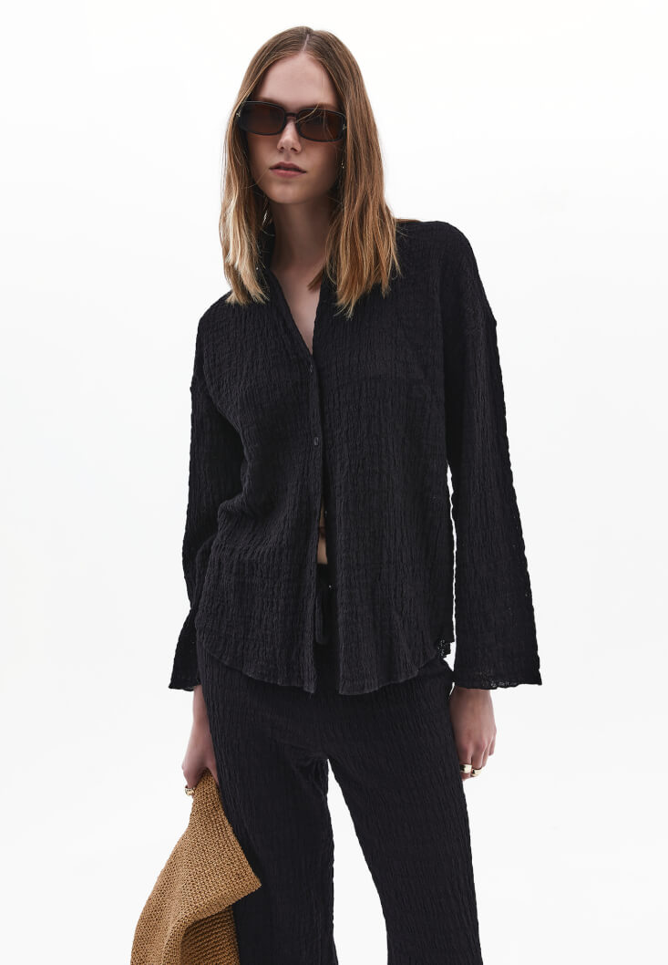 • Bayan Siyah Oversize Gömlek
