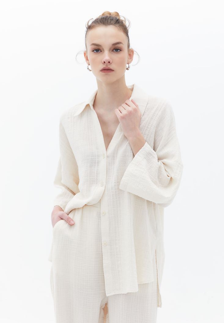Bej Oversize Gömlek
