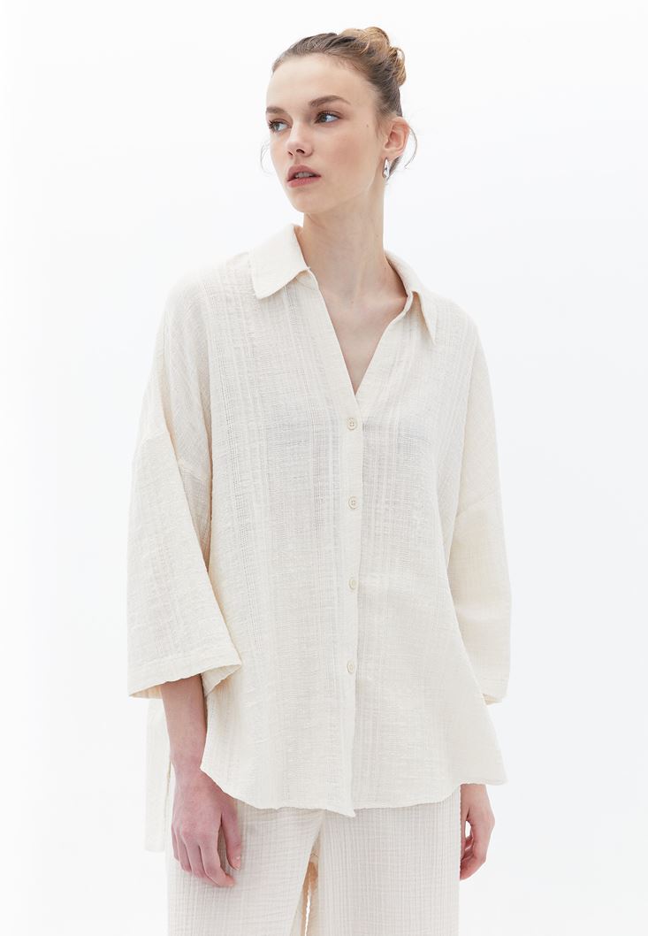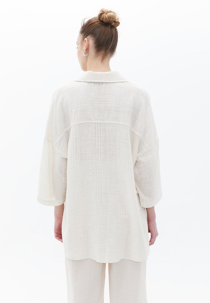 Fit: Oversize / Yaka: Shirt Neck / Kol: 3/4 Sleeve