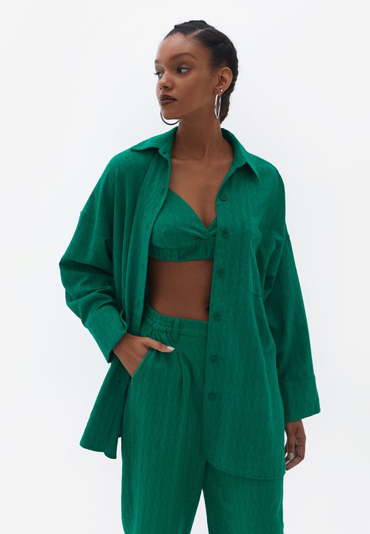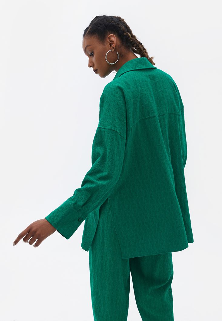 • Bayan Yeşil Oversize Jakarlı Gömlek
