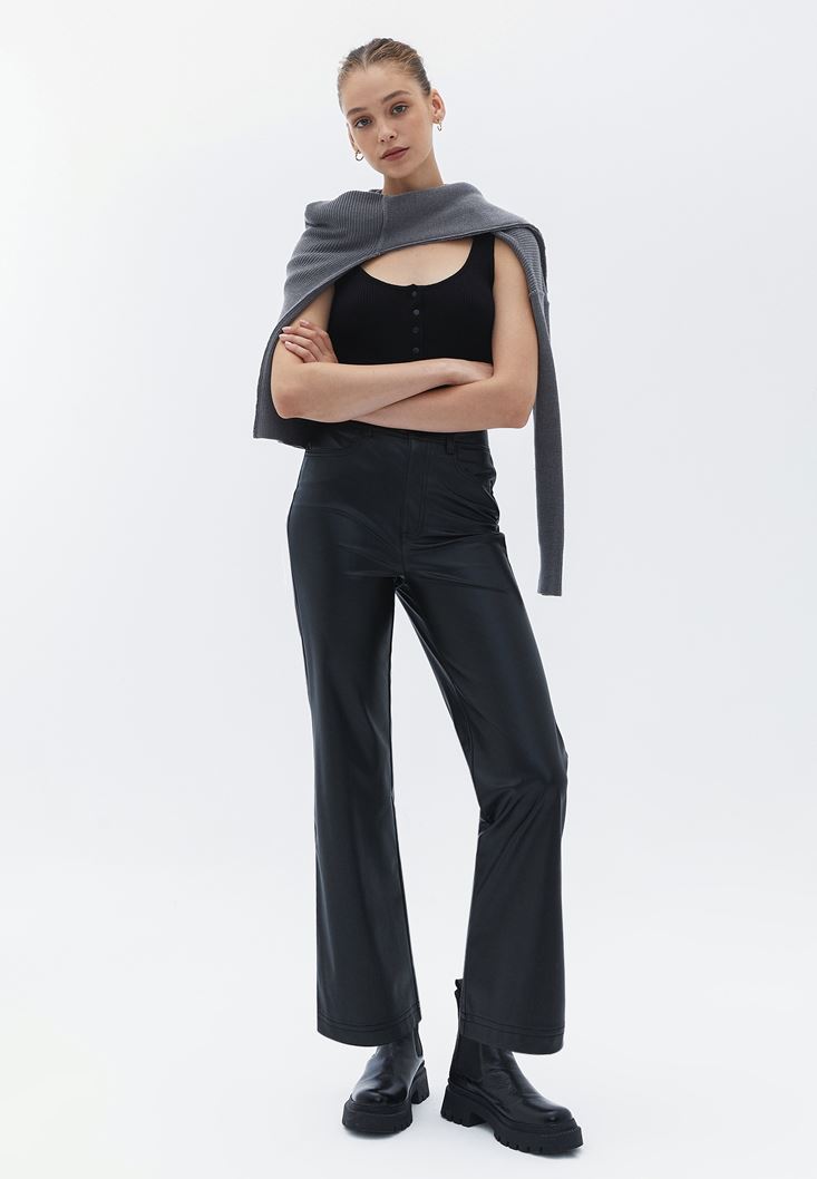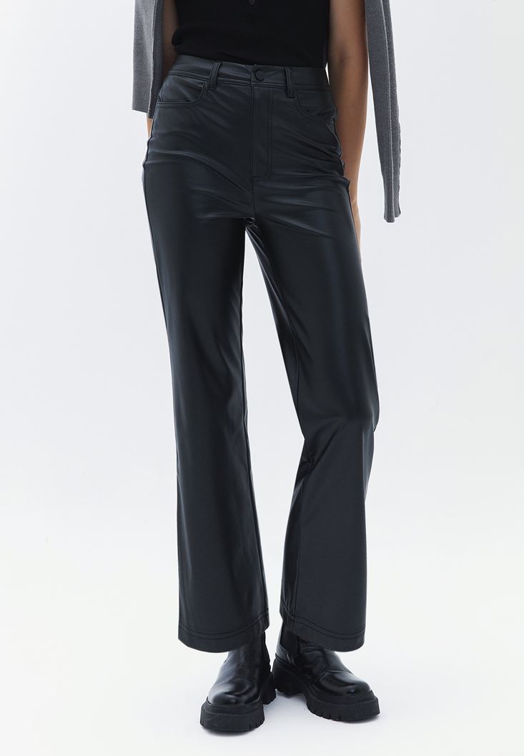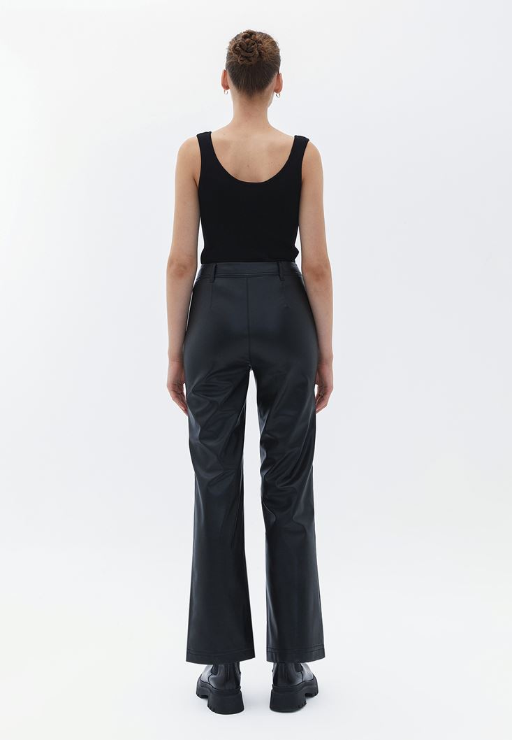 Vegan Deri Kick-Flare Pantolon