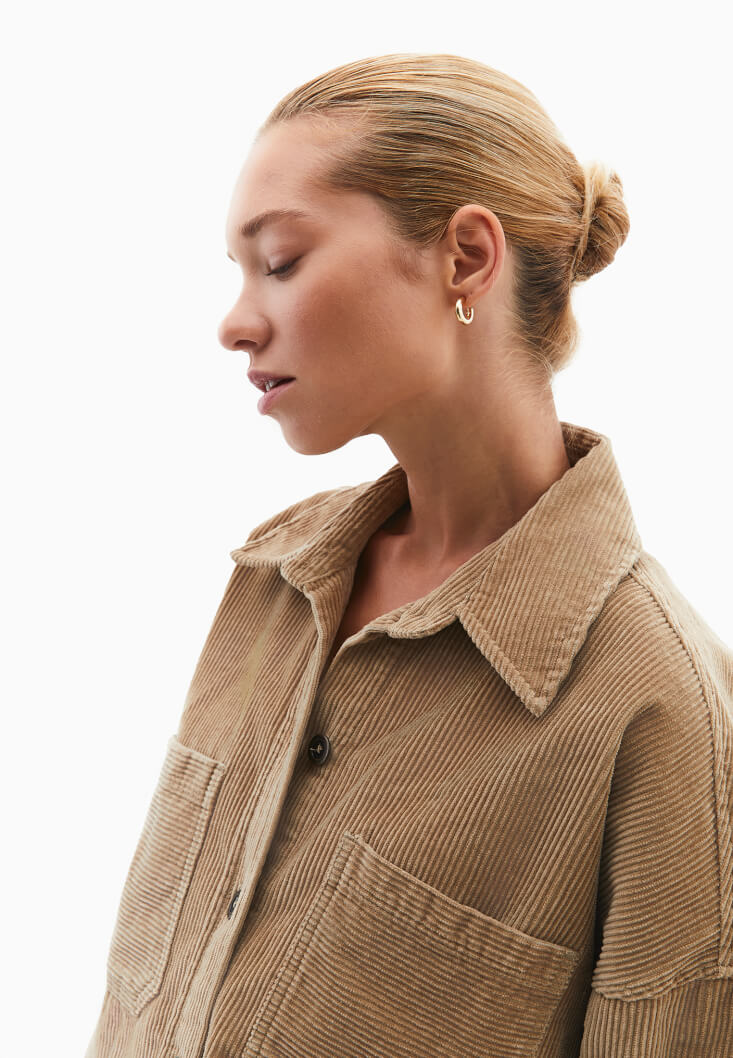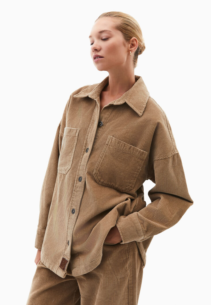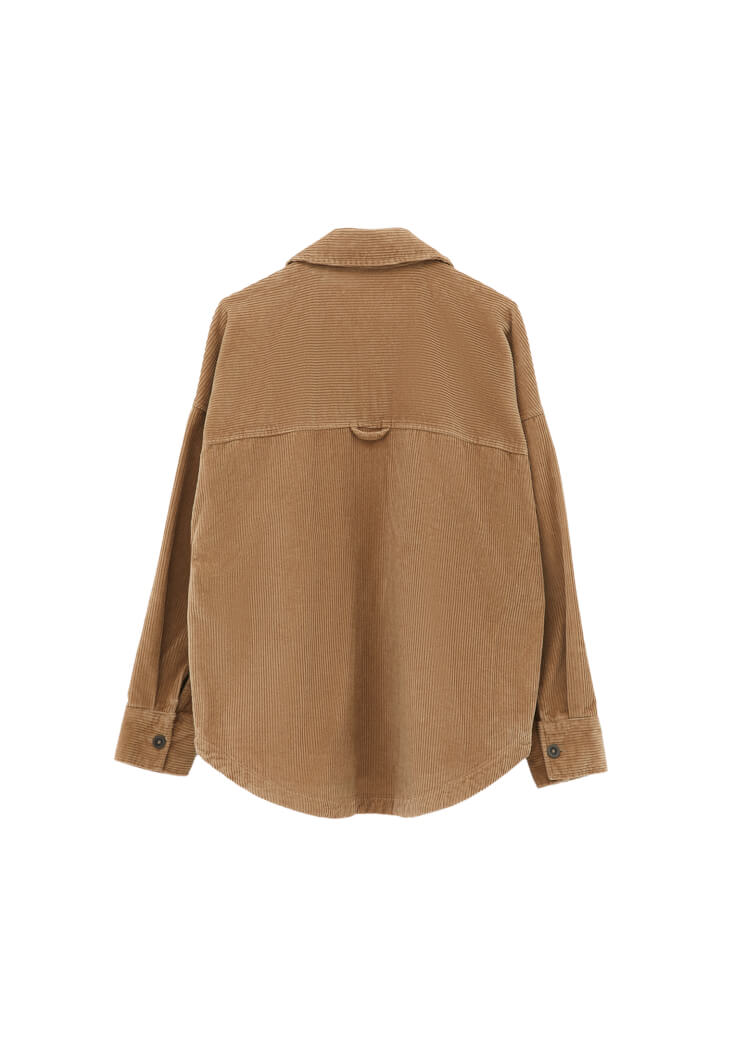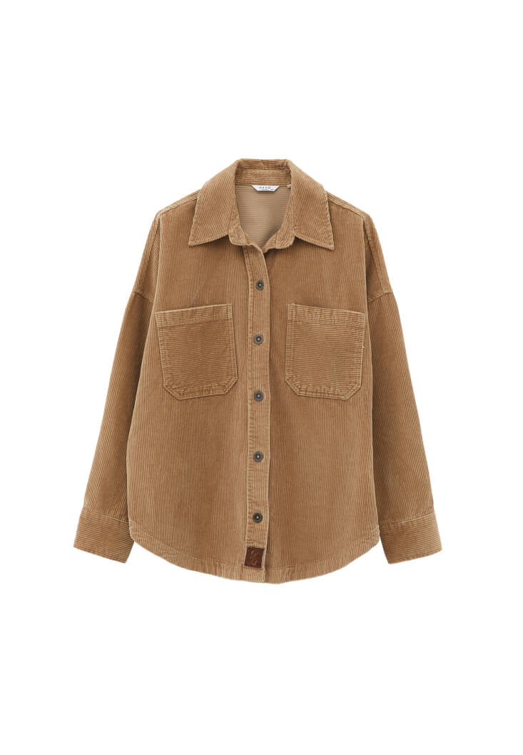 • Bayan Bej Oversize Kadife Gömlek