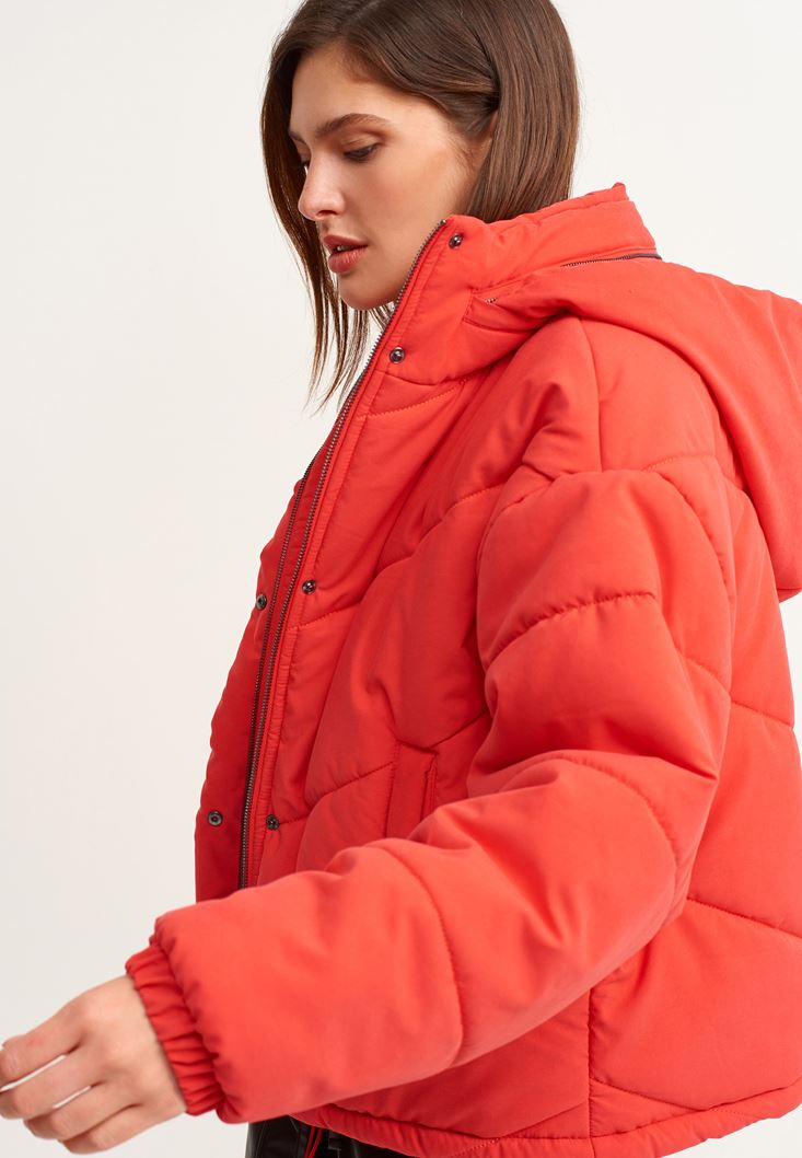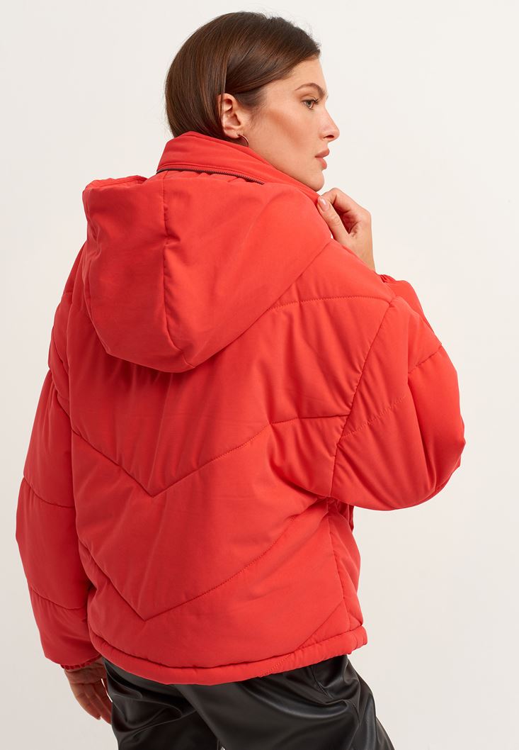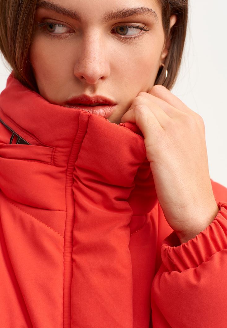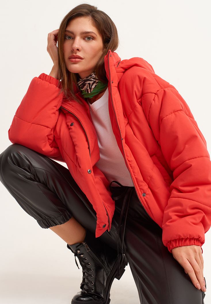 • Bayan Kırmızı Oversize Kapitone Şişme Mont