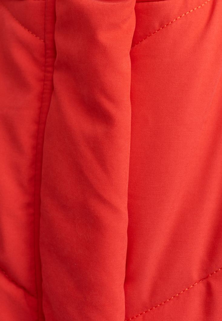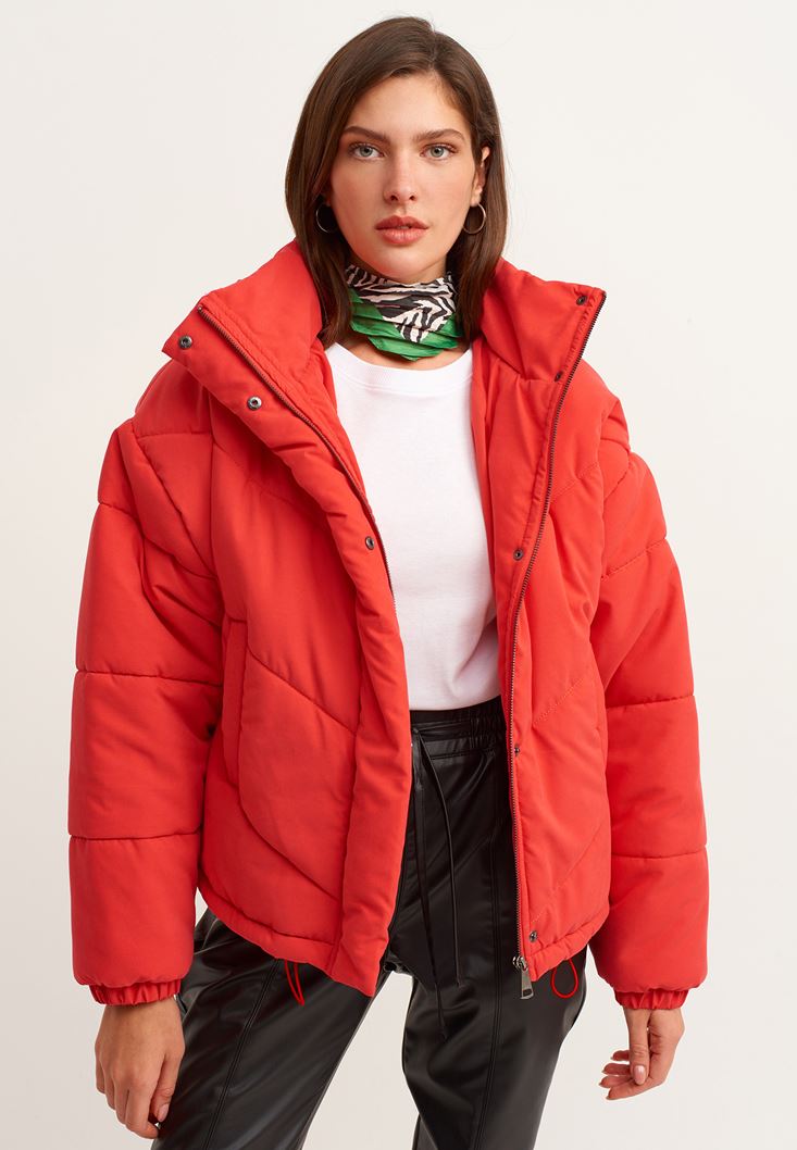 Kırmızı Oversize Kapitone Şişme Mont