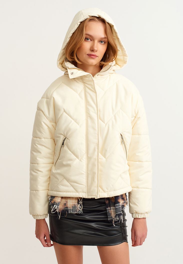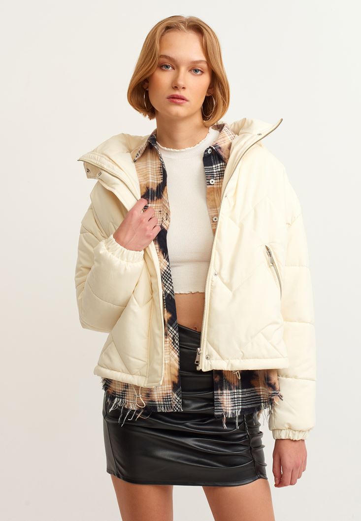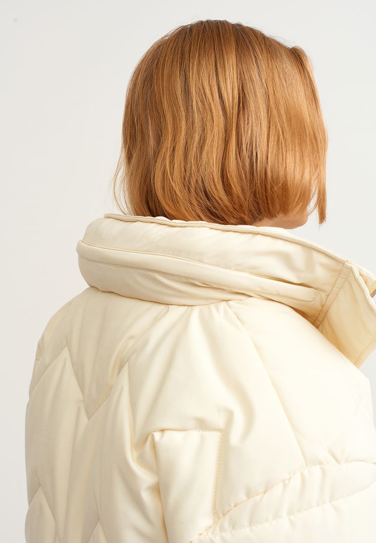 • Bayan Bej Oversize Kapitone Şişme Mont