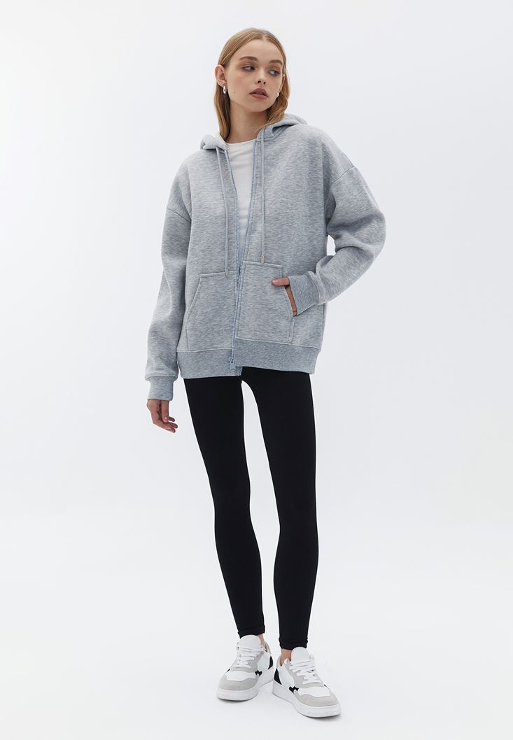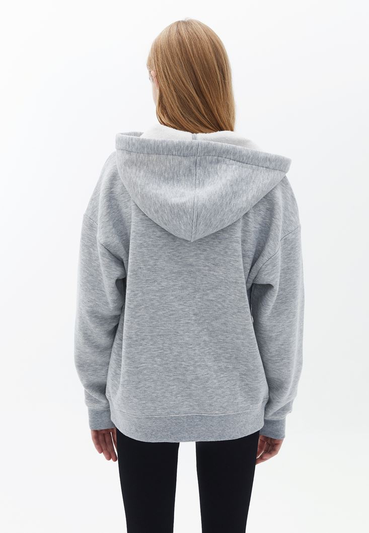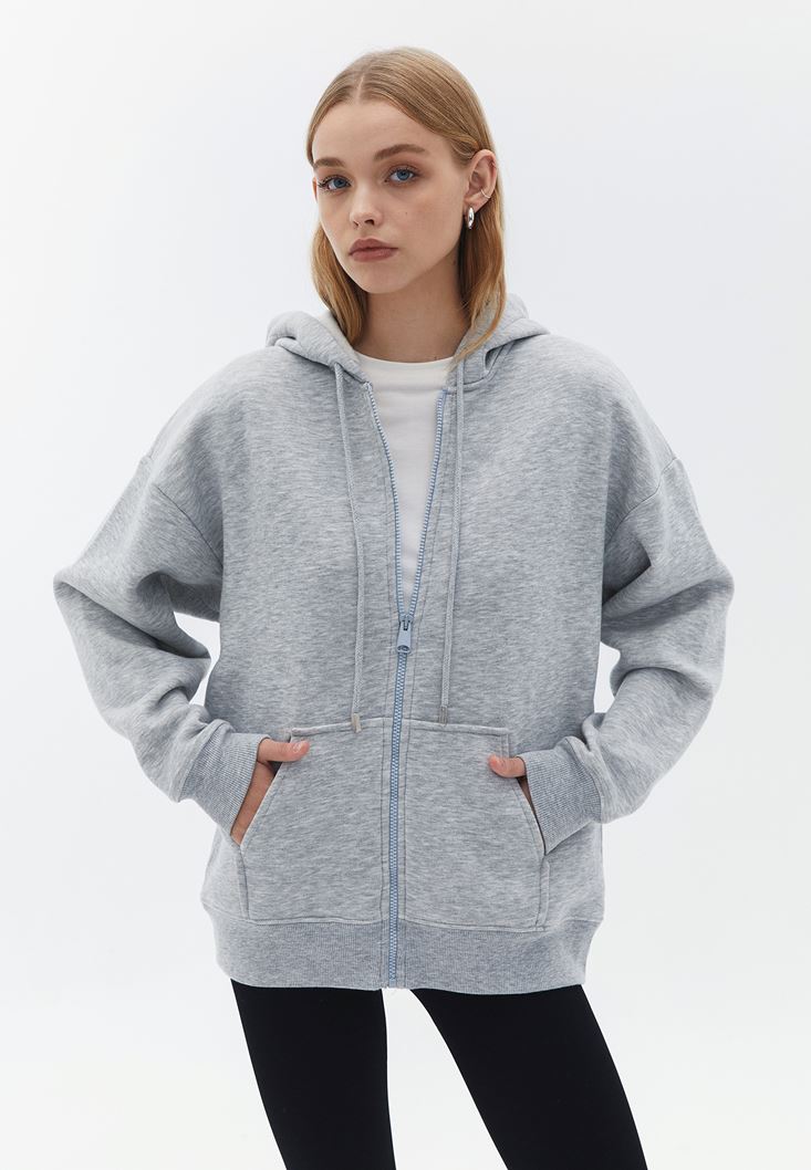 Gri Oversize Kapüşonlu Hırka
