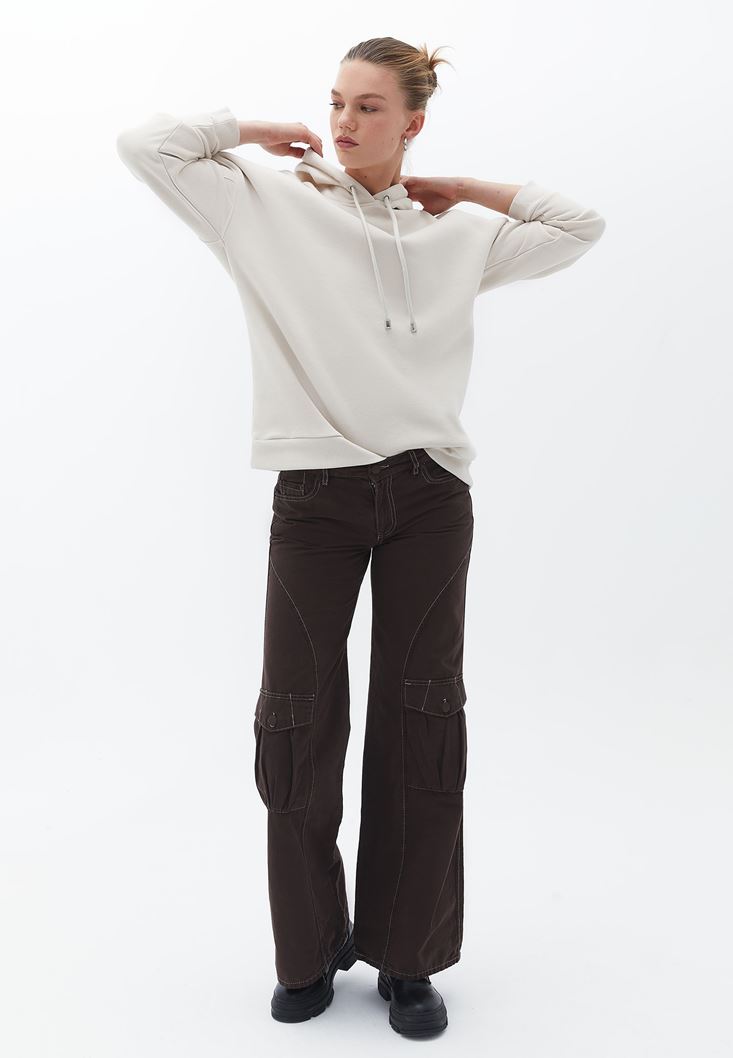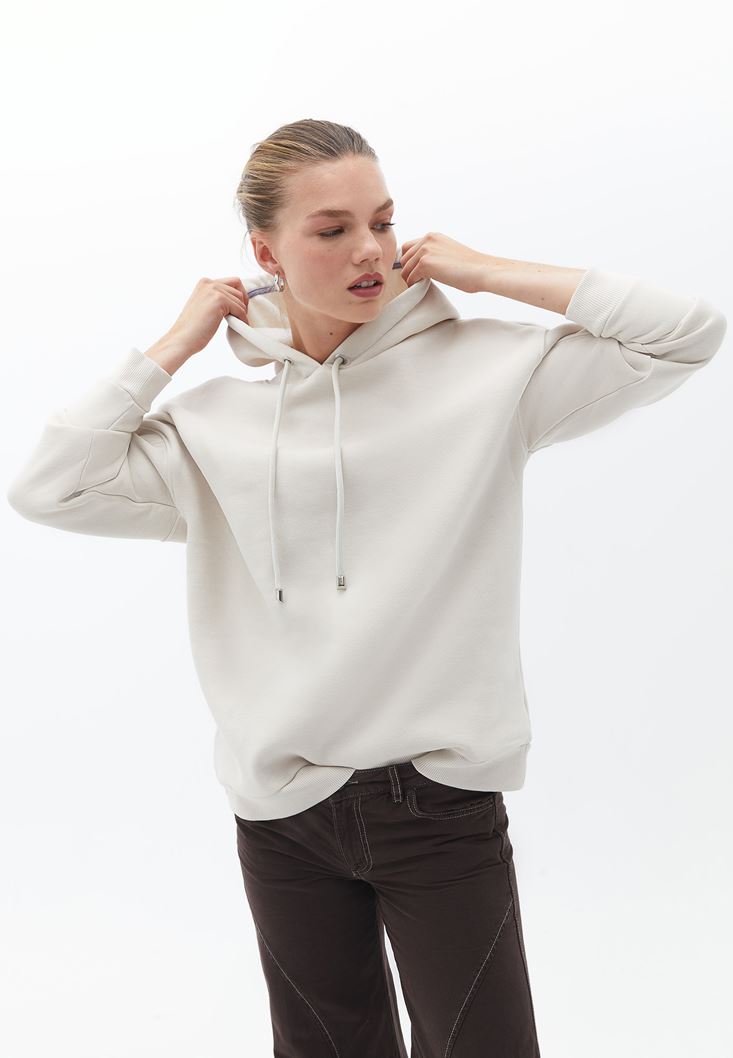 • Bayan Bej Oversize Kapüşonlu Sweatshirt