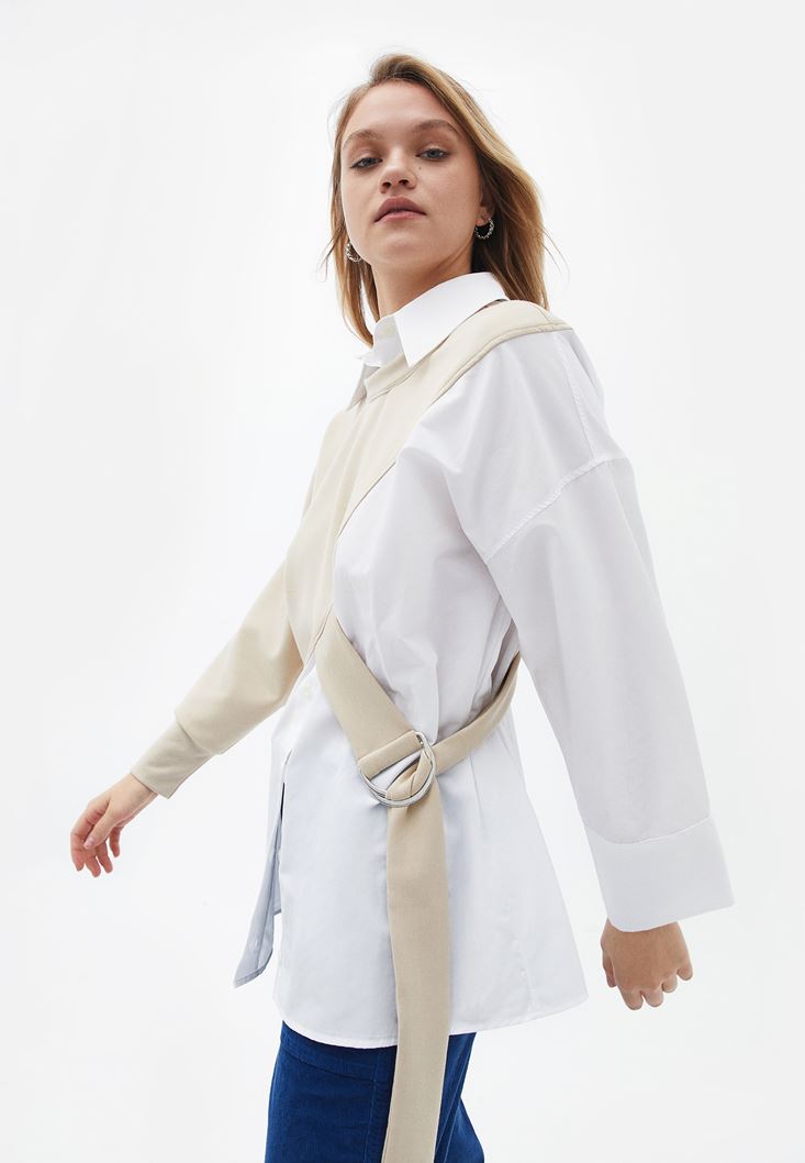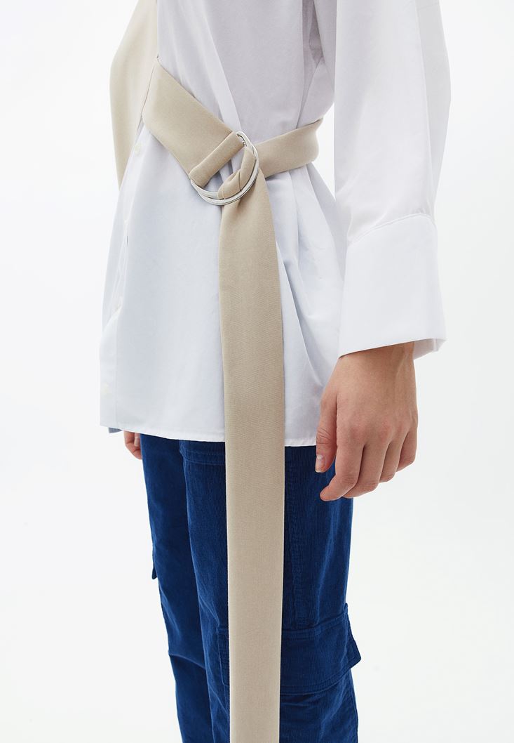 Bej Oversize Kemer Detaylı Gömlek