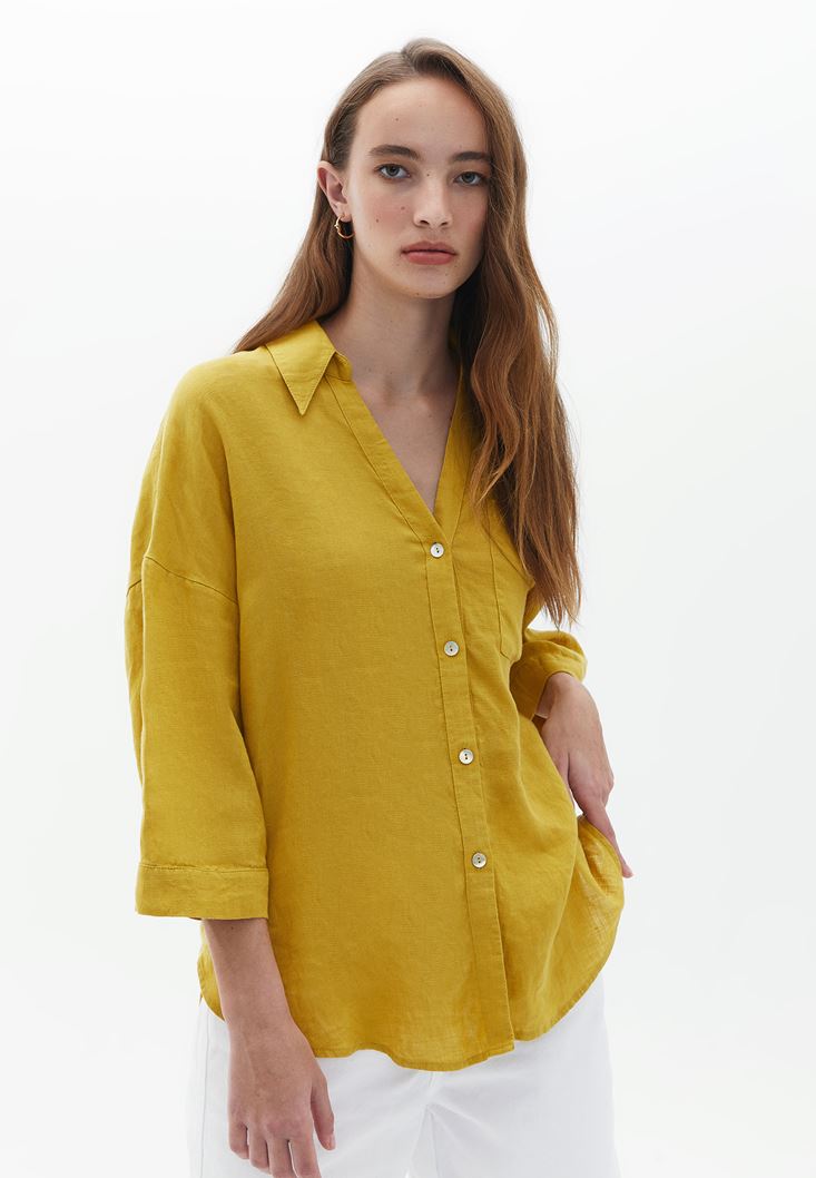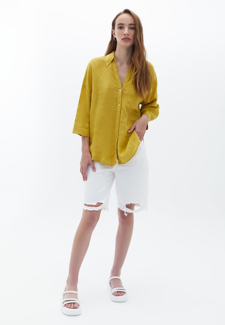 Sarı Oversize Keten Gömlek