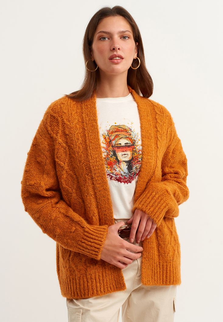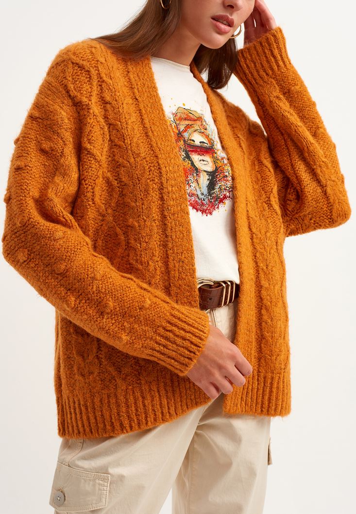 • Bayan Turuncu Oversize Örgü Triko Hırka