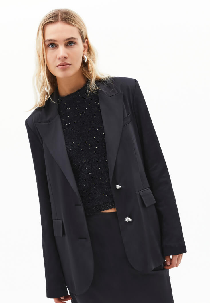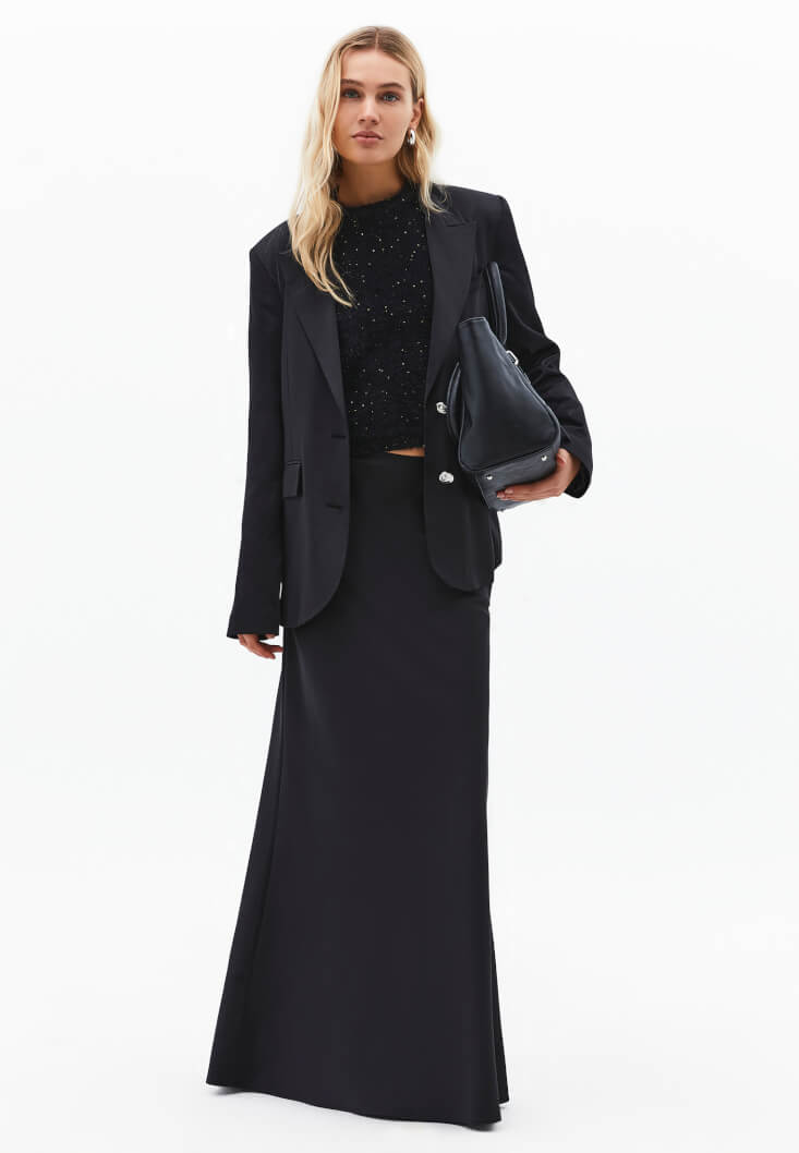 Geleneksel blazer ceket silüetini, akışkan satenin lüks dokusuyla birleştirerek modern bir kimlik kazandırdık. OXXO'nun zamansız ve minimalist parçalar yaratma felsefesini yansıtan bu ceket, sade ama etkileyici bir stil vaat ediyor ve stilinizde güçlü bir iz bırakmanızı sağlıyor.