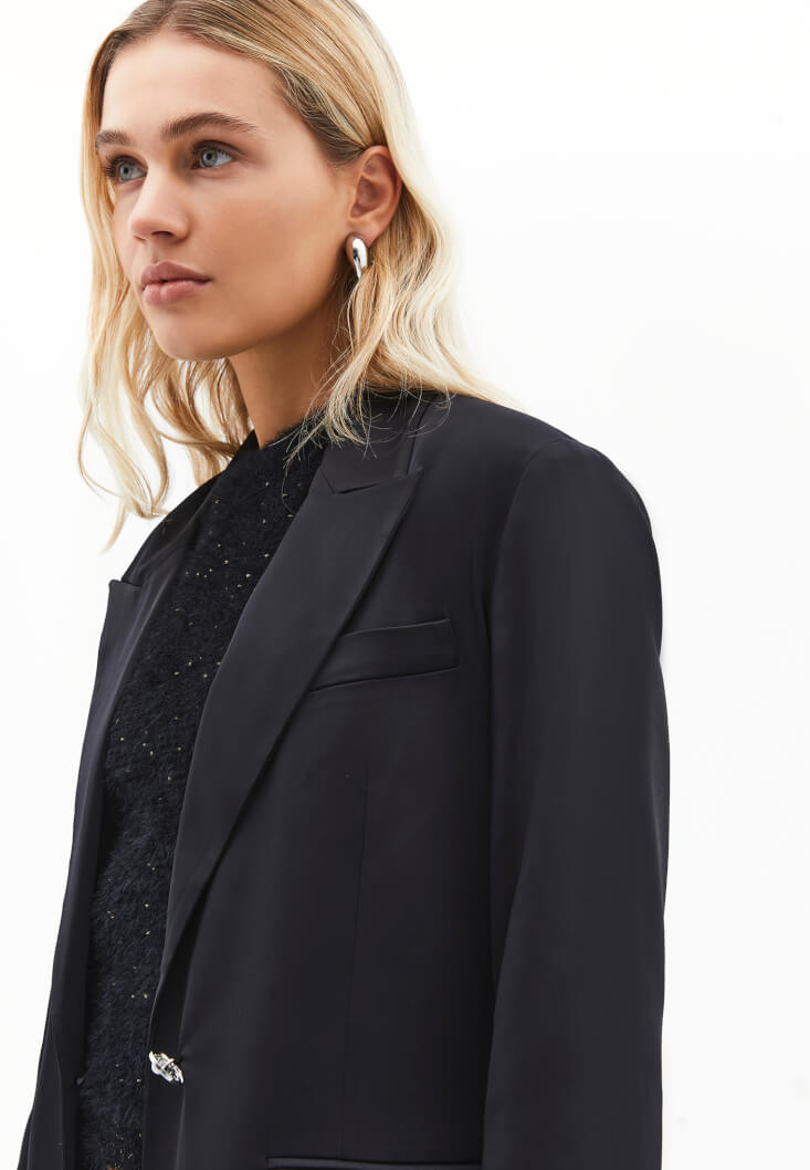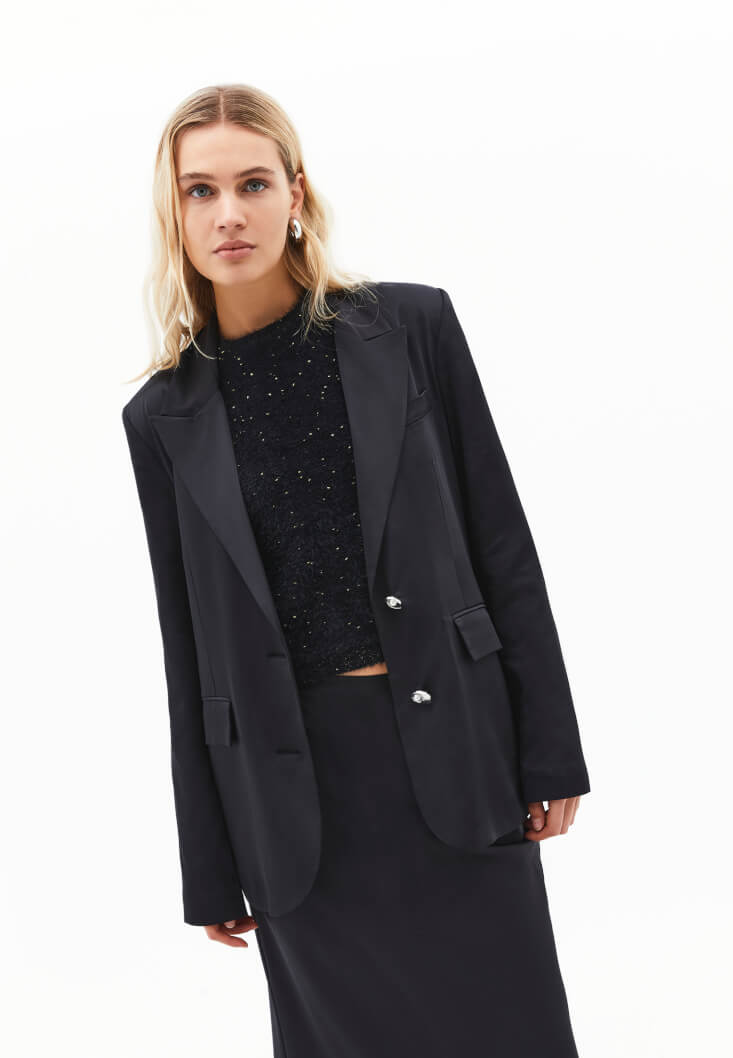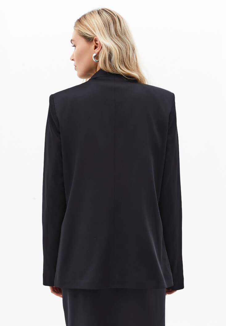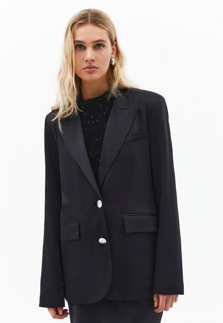 • Bayan Siyah Oversize Saten Blazer Ceket