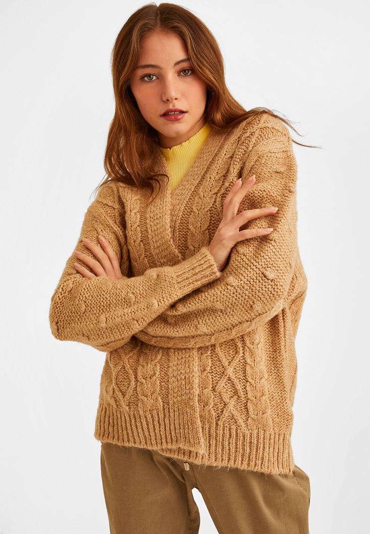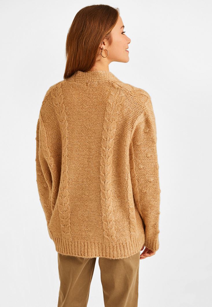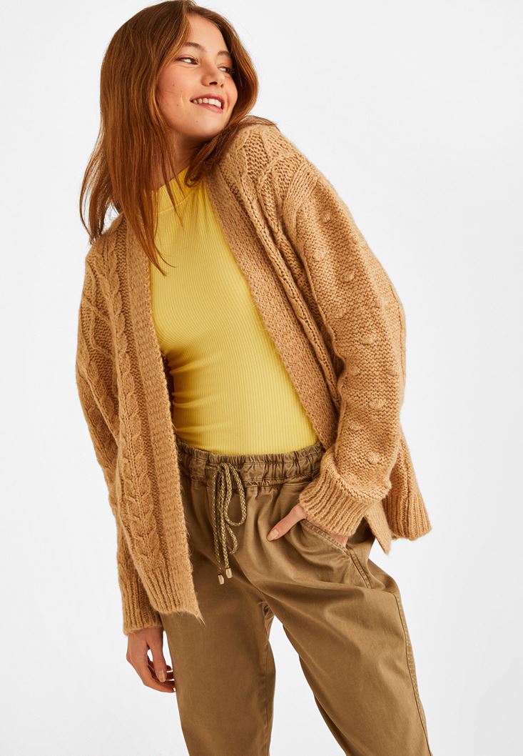• Bayan Bej Oversize Triko Hırka